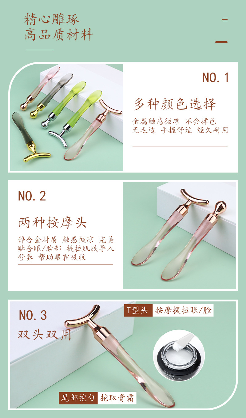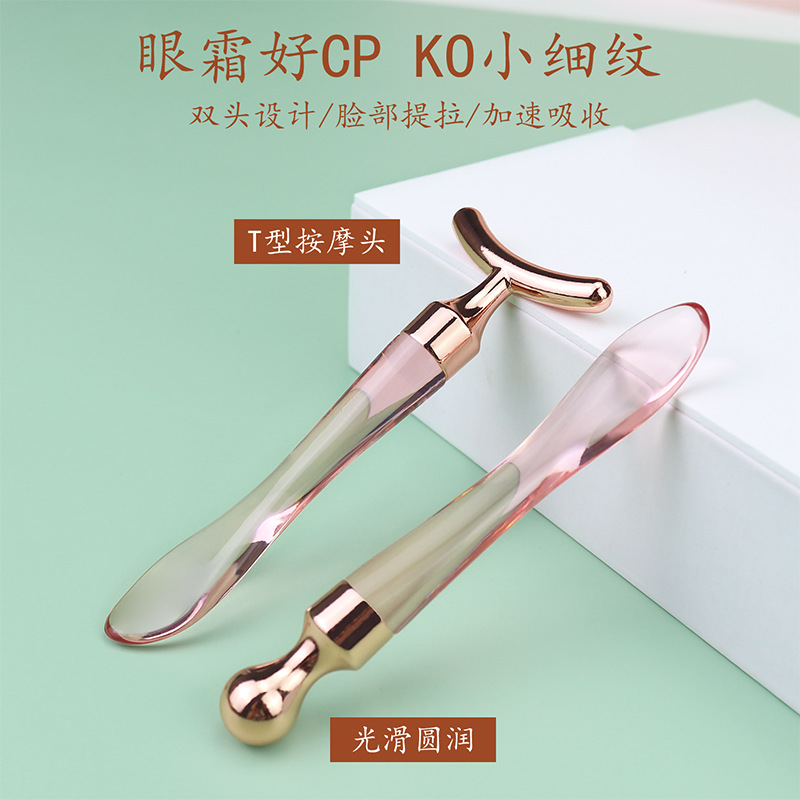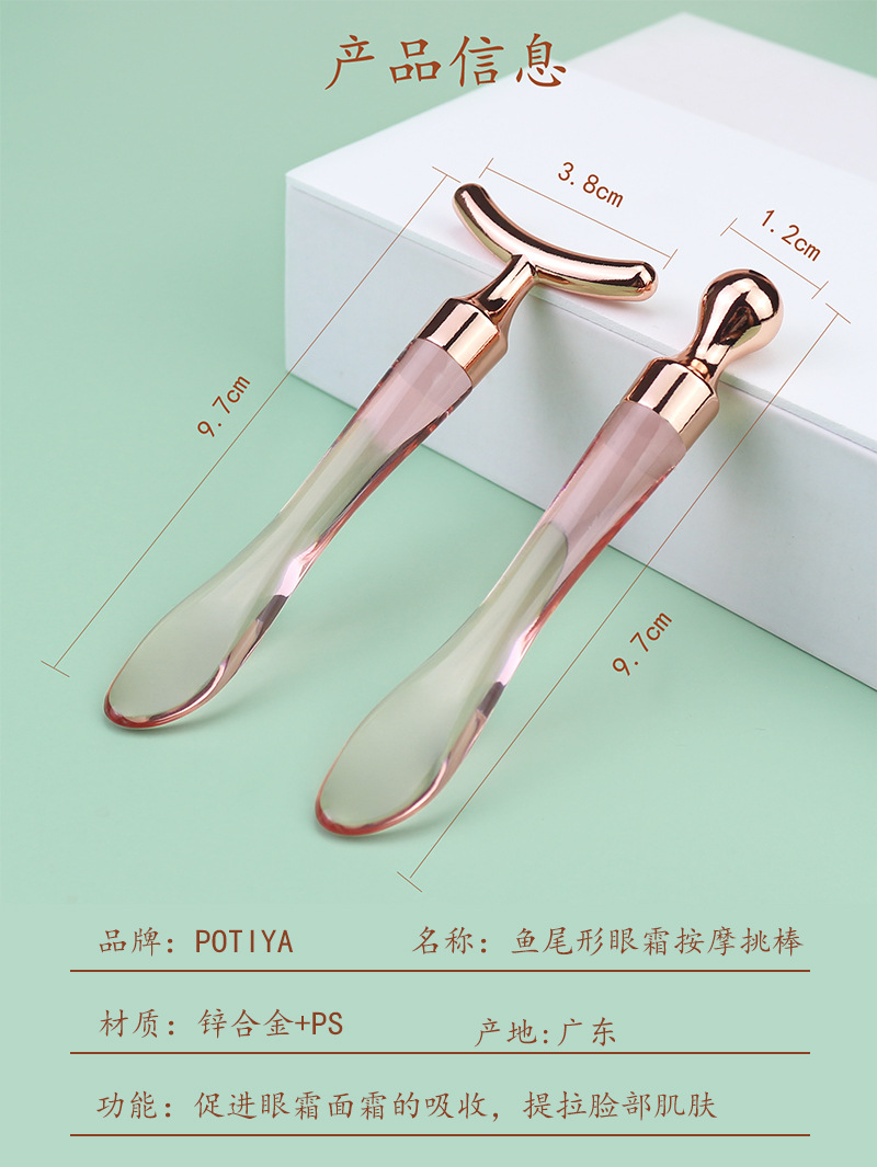 金属眼霜按摩棒鱼尾形化妆品勺双头眼霜面霜导入棒面部按摩美容勺