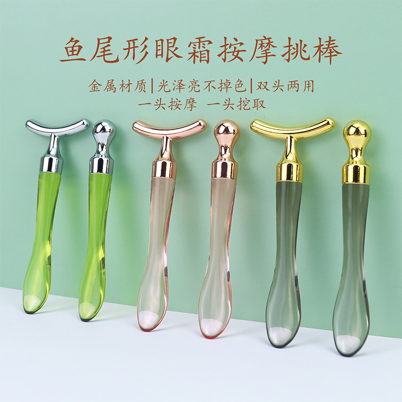 Металлический крем для глаз, массажная палочка в форме рыбьего хвоста, косметическая ложка, двусторонний крем для глаз, крем для лица, импортная палочка, массажная косметическая ложка для лица