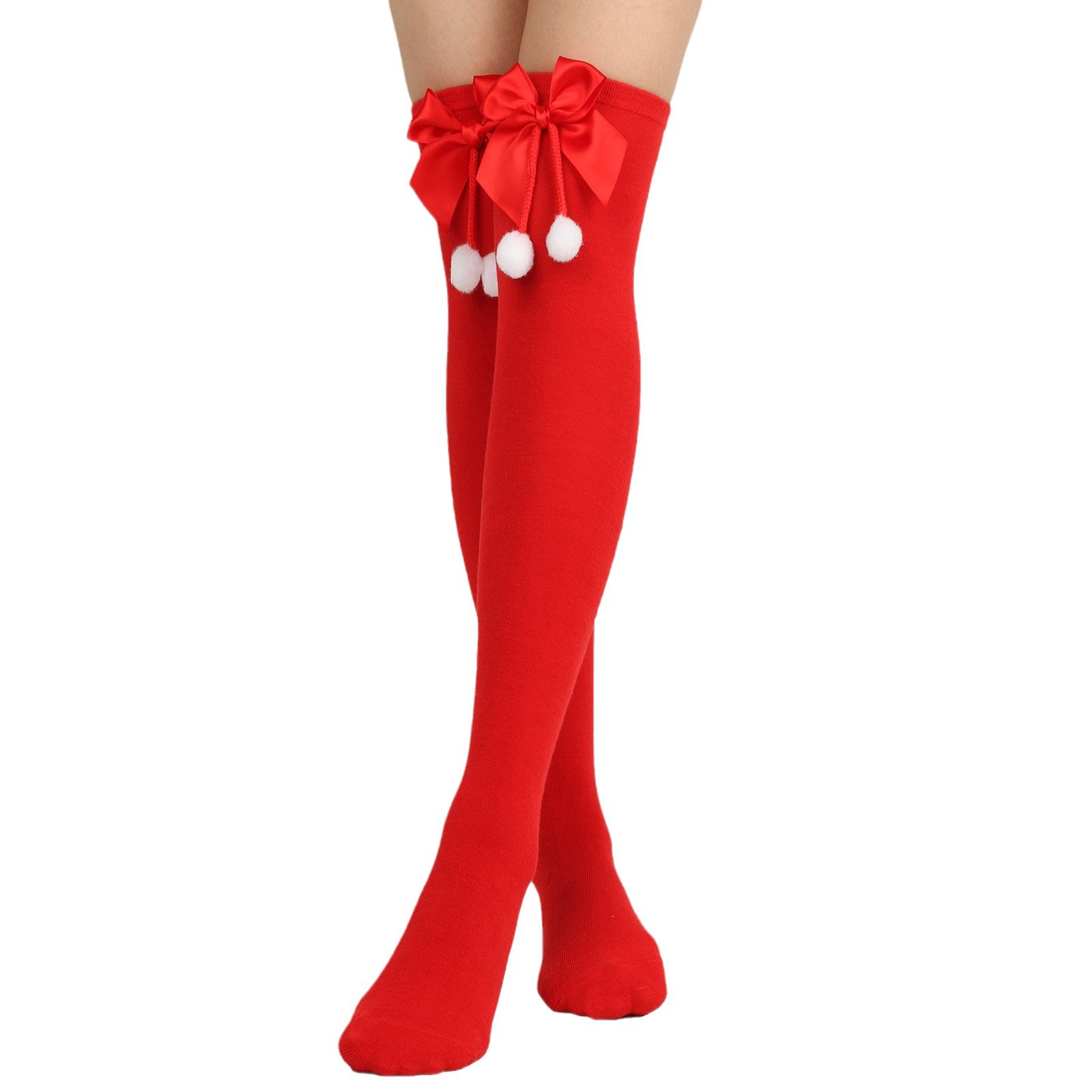 Новые трансграничные банты рождественские носки шарики носки колен женские чулки европейские и американские праздничные рождественские полосатые чулки
