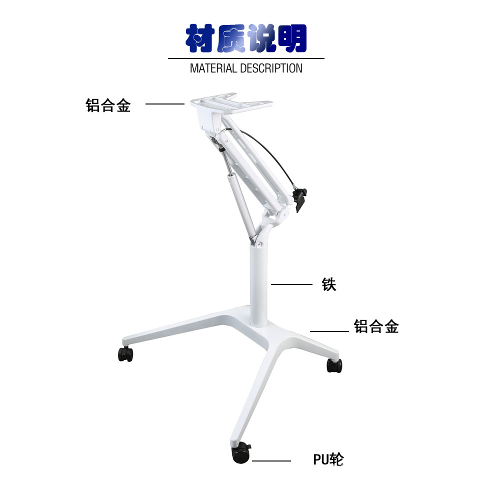 Пневматический регулируемый каркас стола, прикроватный столик, мобильный подиум из алюминиевого сплава без столешницы, мобильный регулируемый стол