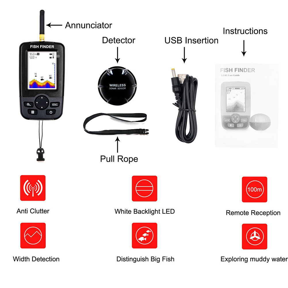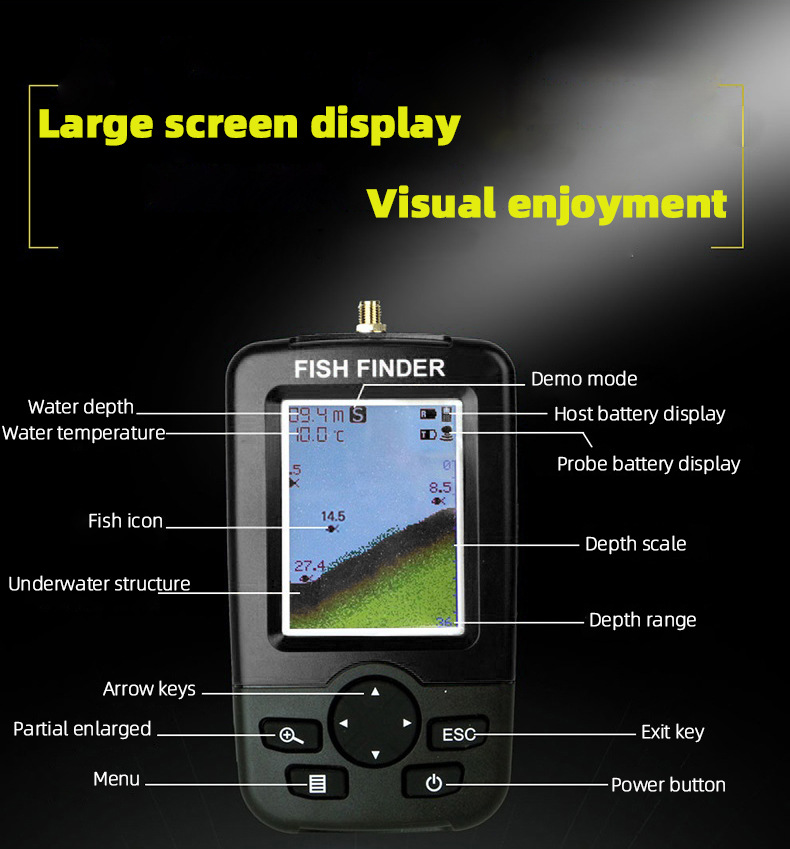 Каспи популярный подводный высококачественный эхолот с глубиной обнаружения до 100 м, черный и красный цвет экрана, специальный эхолот для лодок.