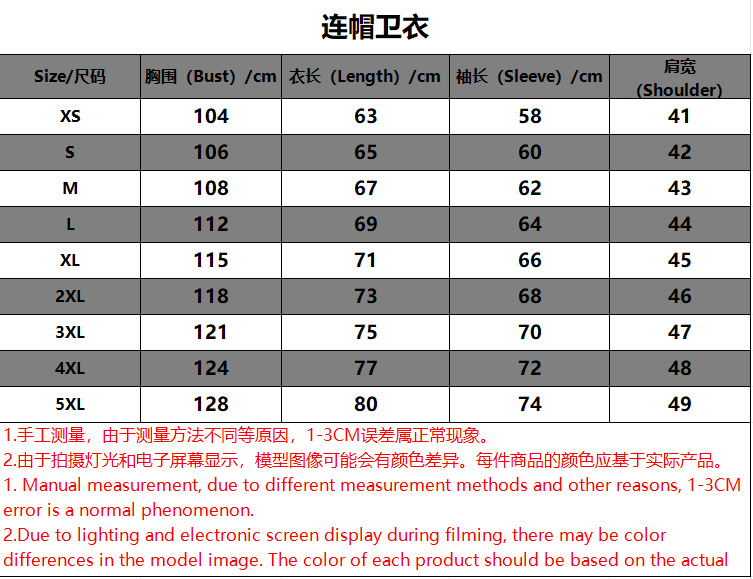 XS; S; M; L; XL; XXL; 3XL; 4XL; 5XL