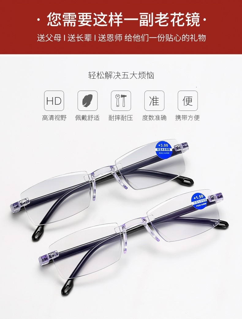 Новые безрамные режущие очки для чтения анти-Blu-ray старик HD смарт-зум очки с автоматическим регулированием зеркала