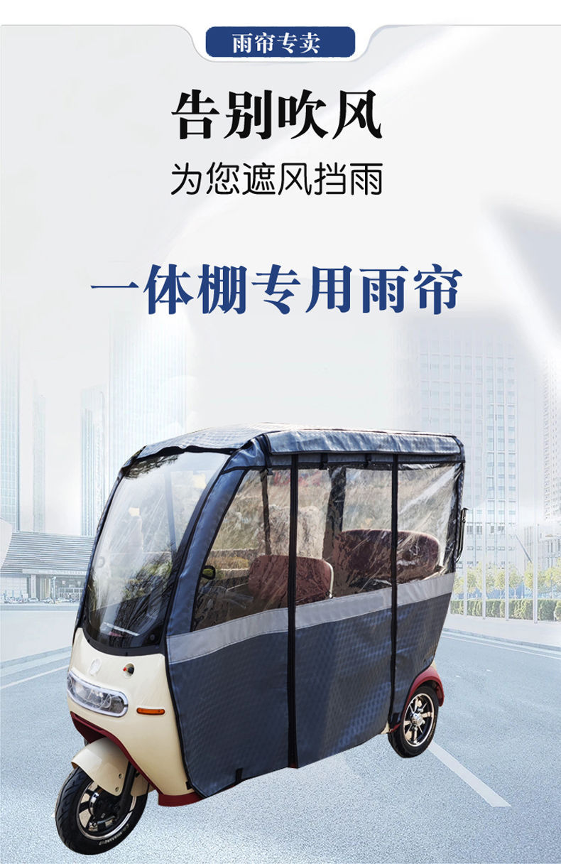 Широкая голова электрического трехколесного транспортного средства с дождевой завесой, затенение, затенение