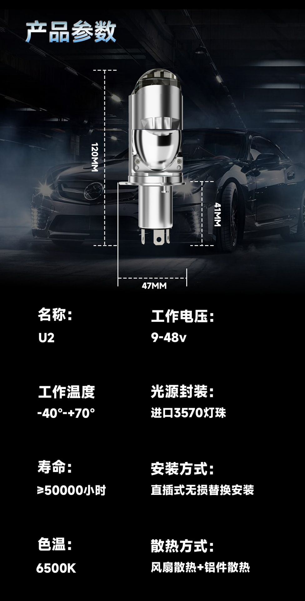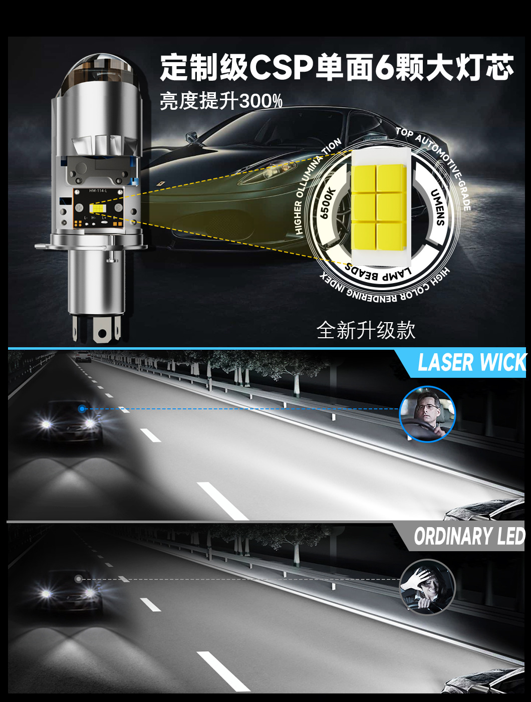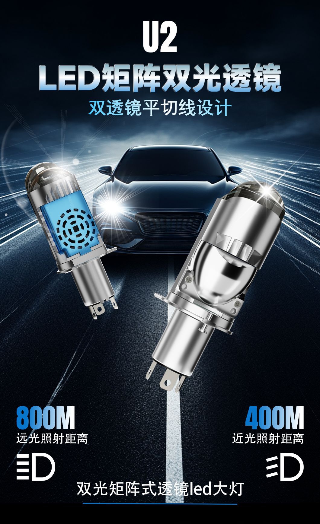 HAIZG новый трансграничный автомобильная светодиодная фара U2 матрица двойная световая линза H4 дальний и ближний автомобиль светодиодные фары