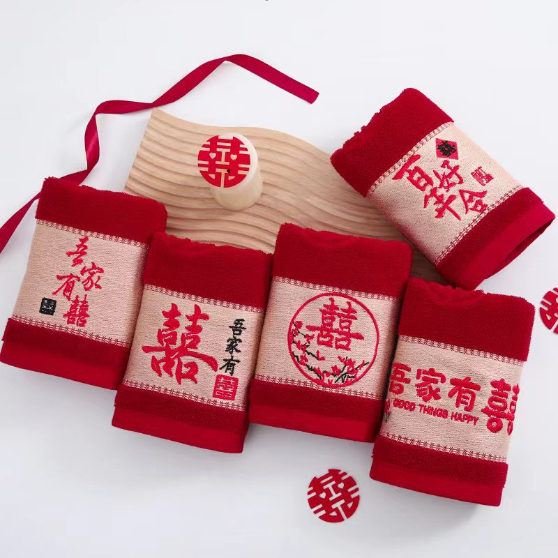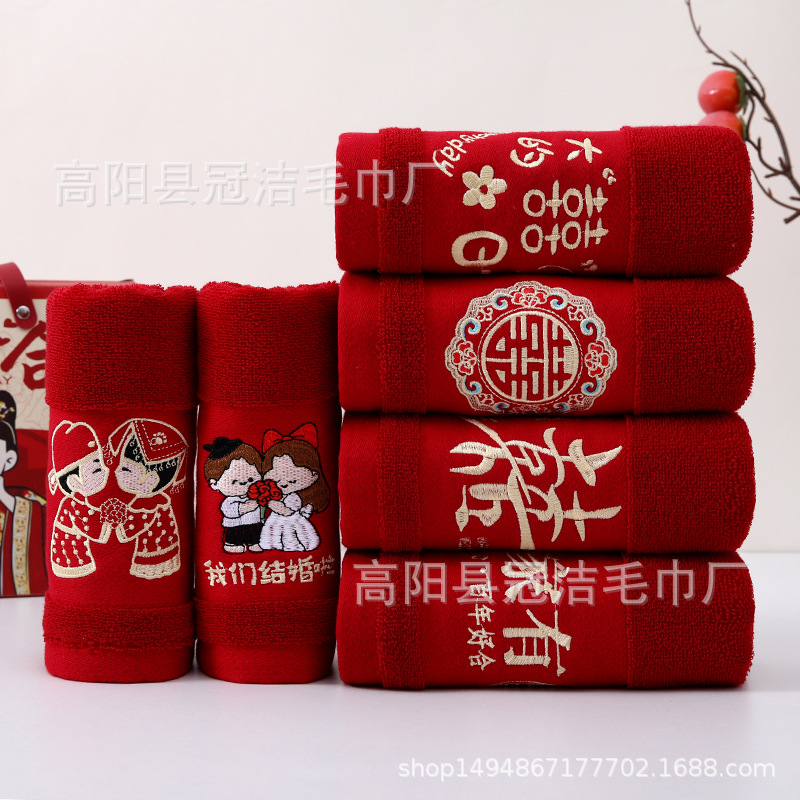 Свадебный подарок полотенце винно-красный свадебный вышивка свадебный приданый подарок мягкий впитывающий праздничное хлопковое полотенце