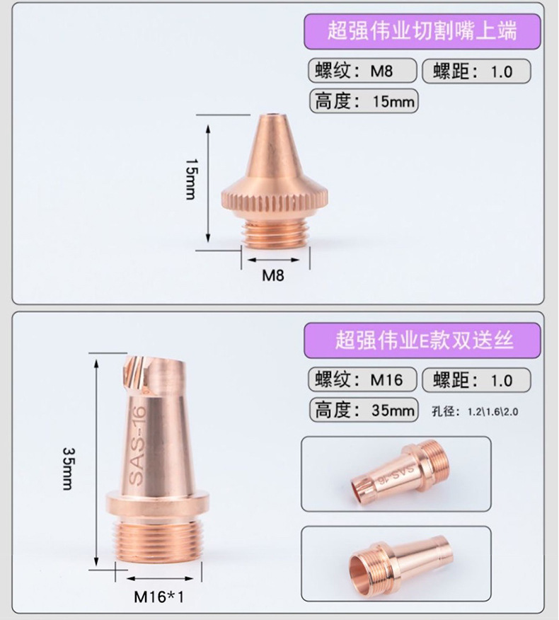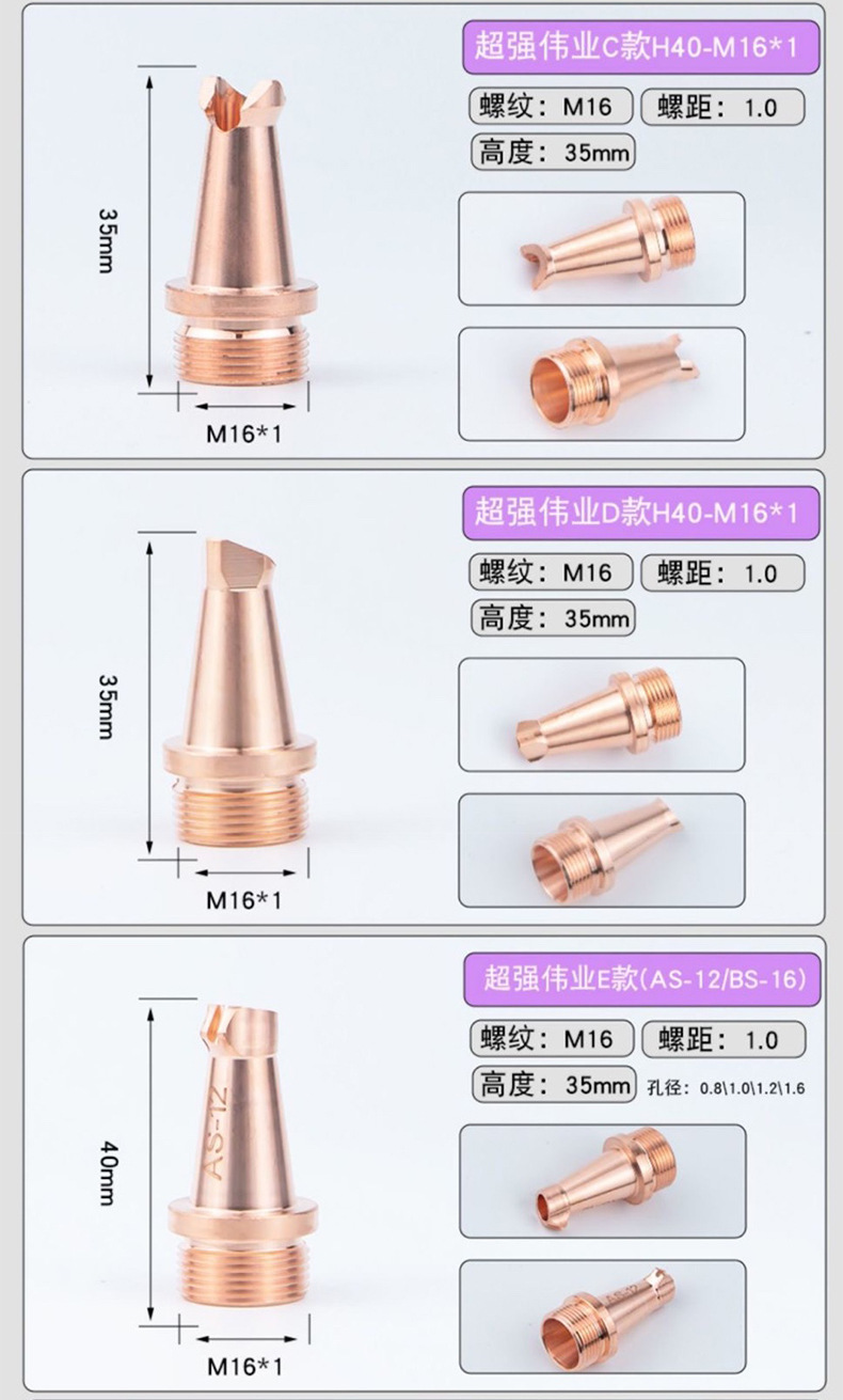 Медное сопло, сваренное лазером CS12-0.8; Лазерная сварная медная насадка CS12-1.0; Медное сопло, сваренное лазером, ES12-0,8; Насадка из лазерной сварки меди ES12-1.0; Лазерная сварная медная насадка ES12-1.2; Лазерная сварка медного сопла AS12; Лазерная сварка медного наконечника BS16; Наконечник направляющей для проволоки