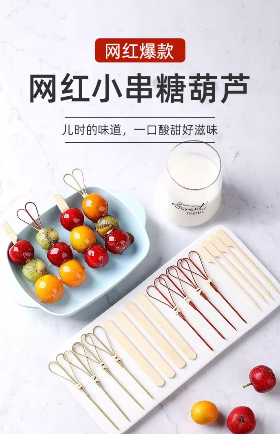 Сетка красная мини-шашлык из сахарной тыквы бамбуковая палка оптовая клейкая рисовая бумага из сахарной тыквы инструмент принадлежности мультфильм фруктовый знак