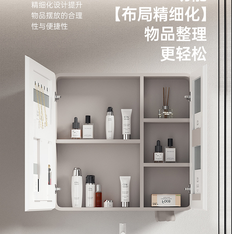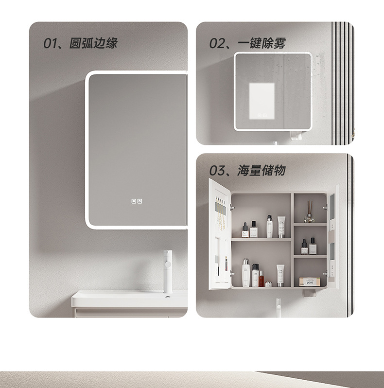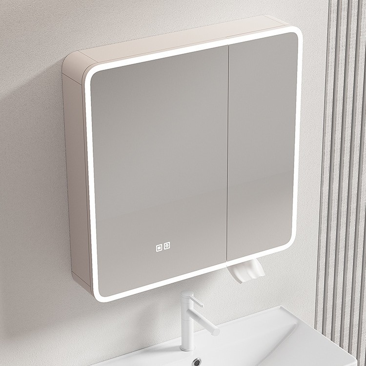 Взрывной дугообразный интеллектуальный зеркальный шкаф с молоком цвета карри космического алюминиевого стенового зеркала для ванной комнаты
