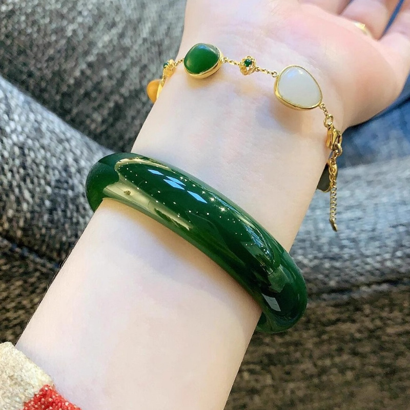 Аутентичный натуральный подлинный Синьцзян Хетиан Джейд Джаспер браслет шпинат зеленый женский нефритовый браслет, чтобы отправить сертификат на день рождения