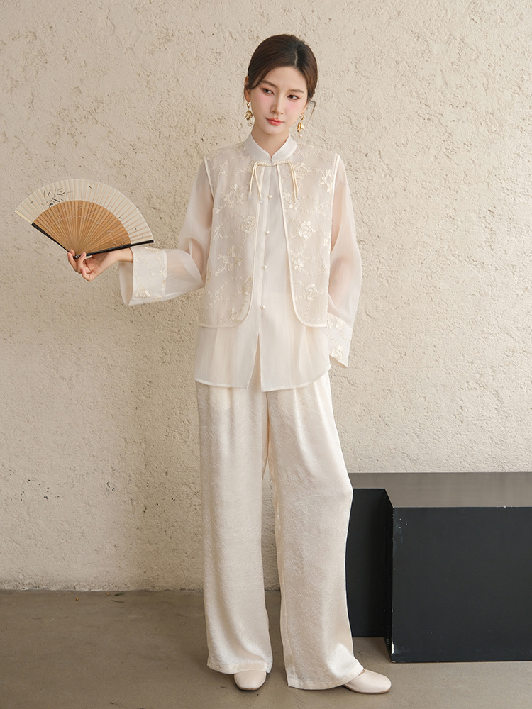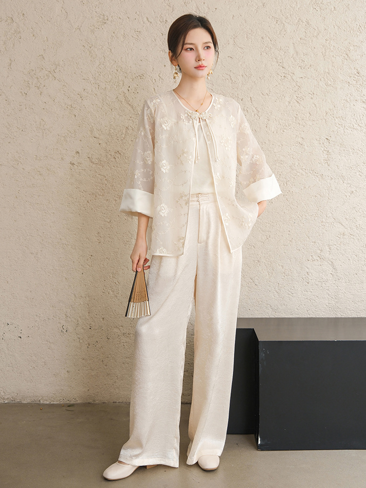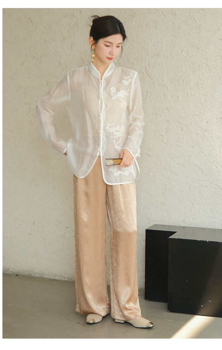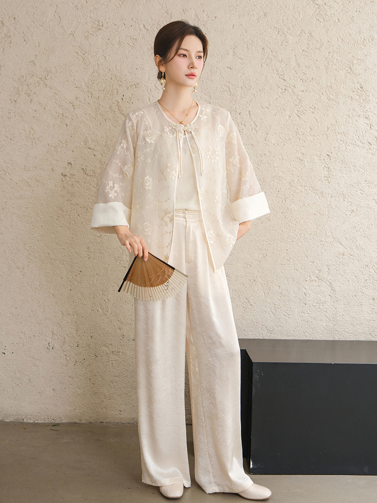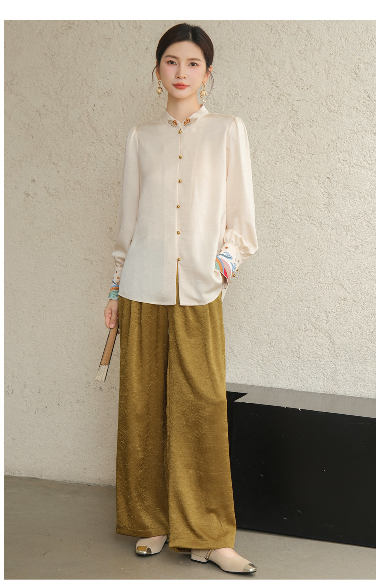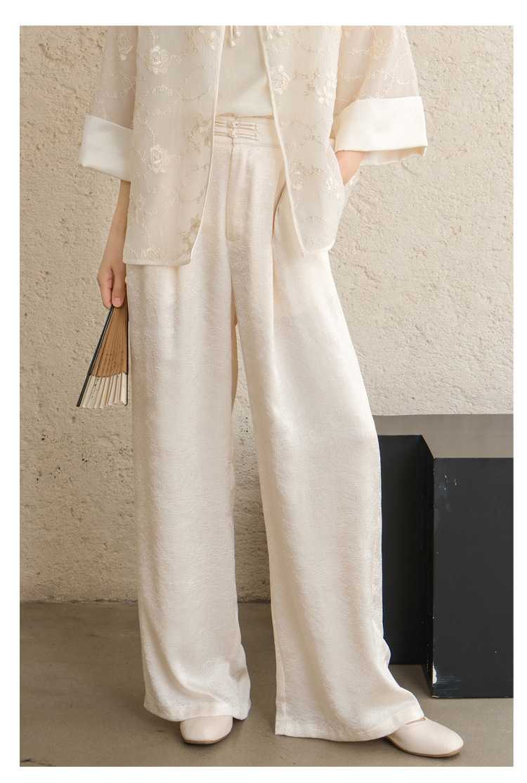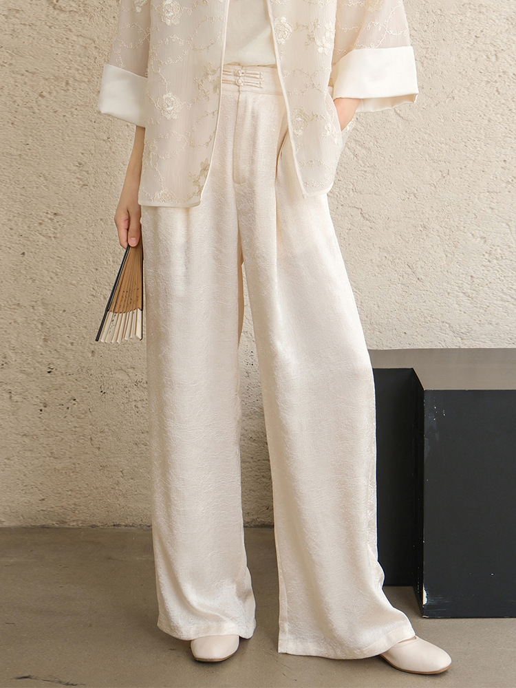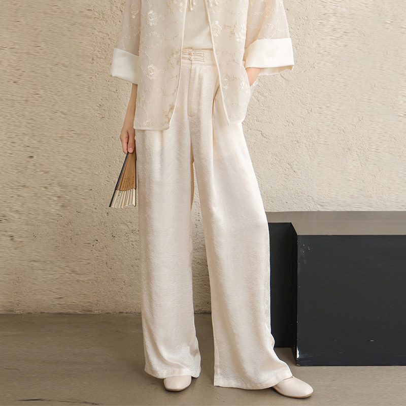 Высокие женские брюки высокого класса Hanfu с белыми брюками женские новые китайские атласные узкие брюки