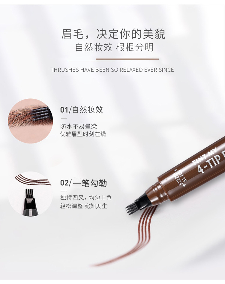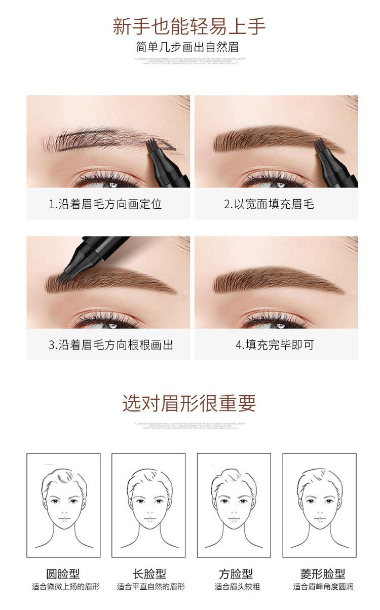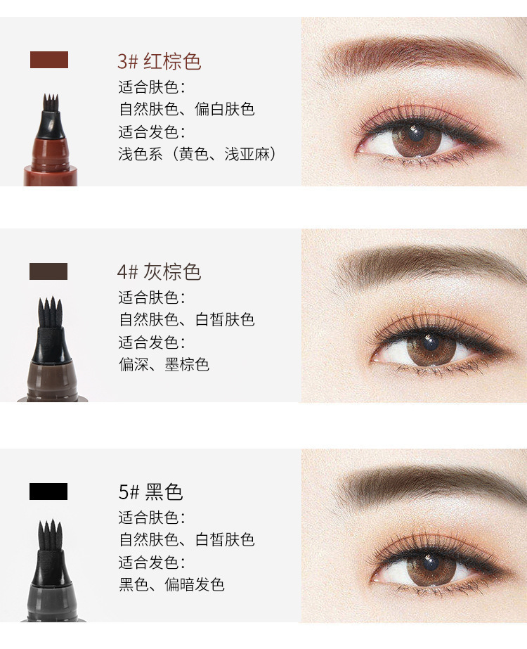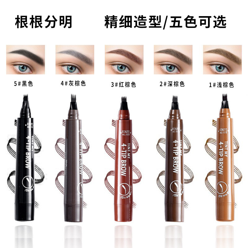 Китайская версия четырехраздрочной ручки для бровей дикая имитация водонепроницаемая, анти-потеющая, не выцветает, не окрашивает четыре раздвоенные жидкие ручки для бровей