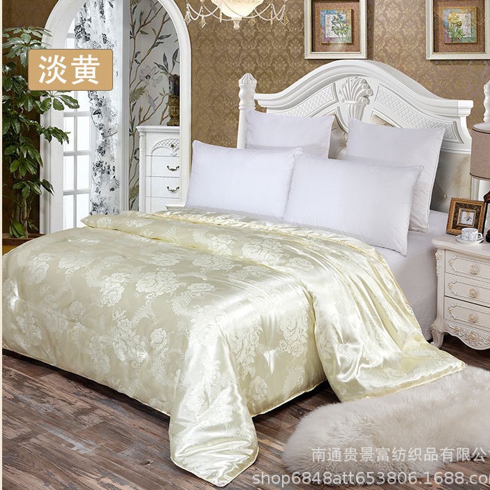 4、本款宝贝面料:磨毛压花面料,填充物:仿蚕丝,蚕丝被。本店产品花型,尺寸较多,适合各个年龄层和消费水平的顾客!