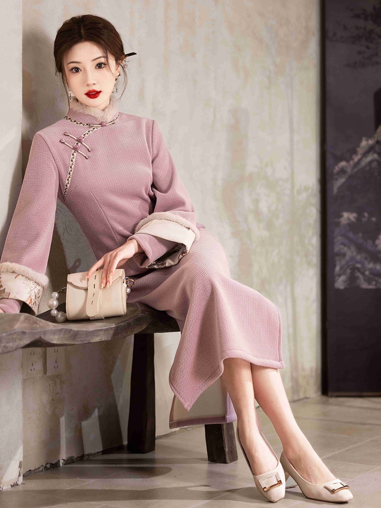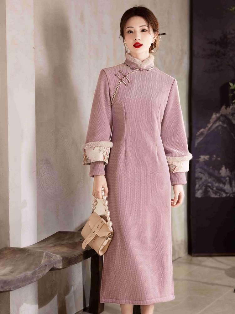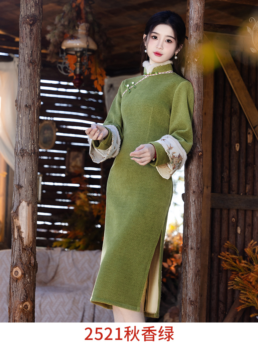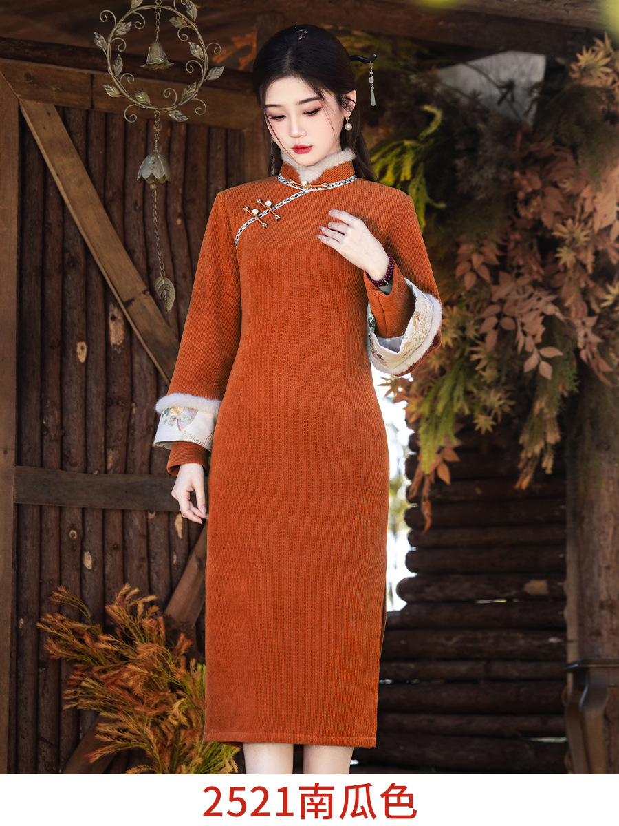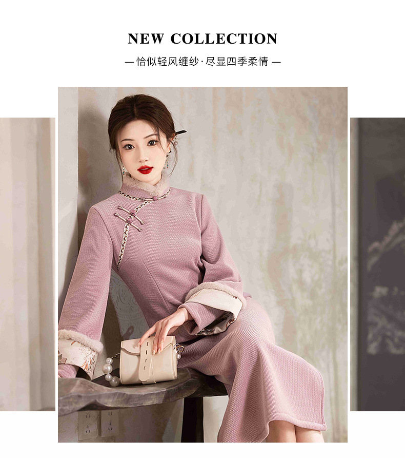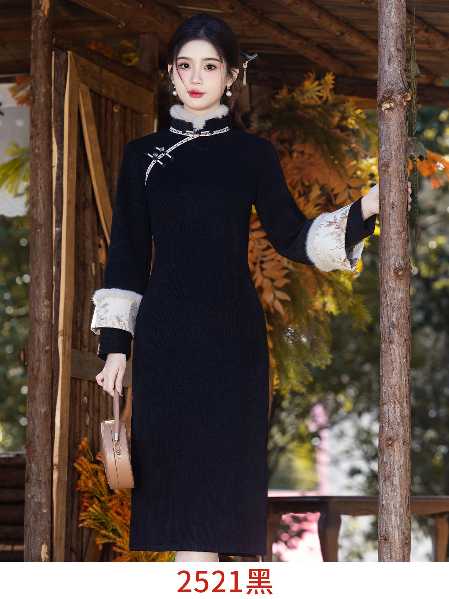 Новый китайский стиль bei zhiyun элегантный улучшенный чонсам осенний и зимний женский облегающее платье на плече