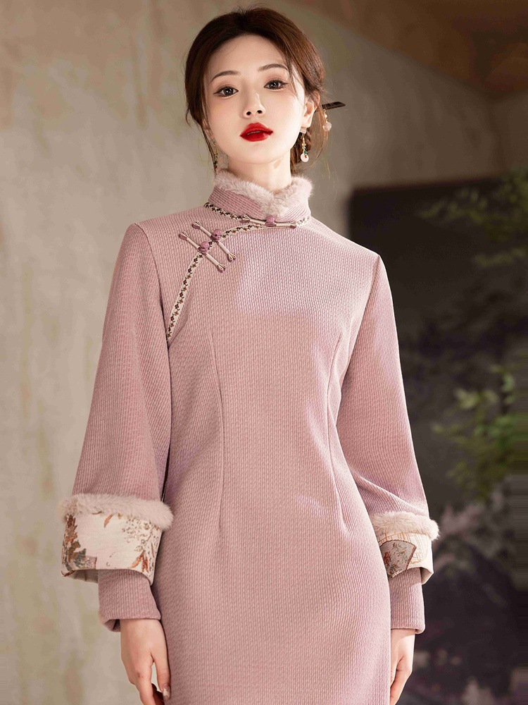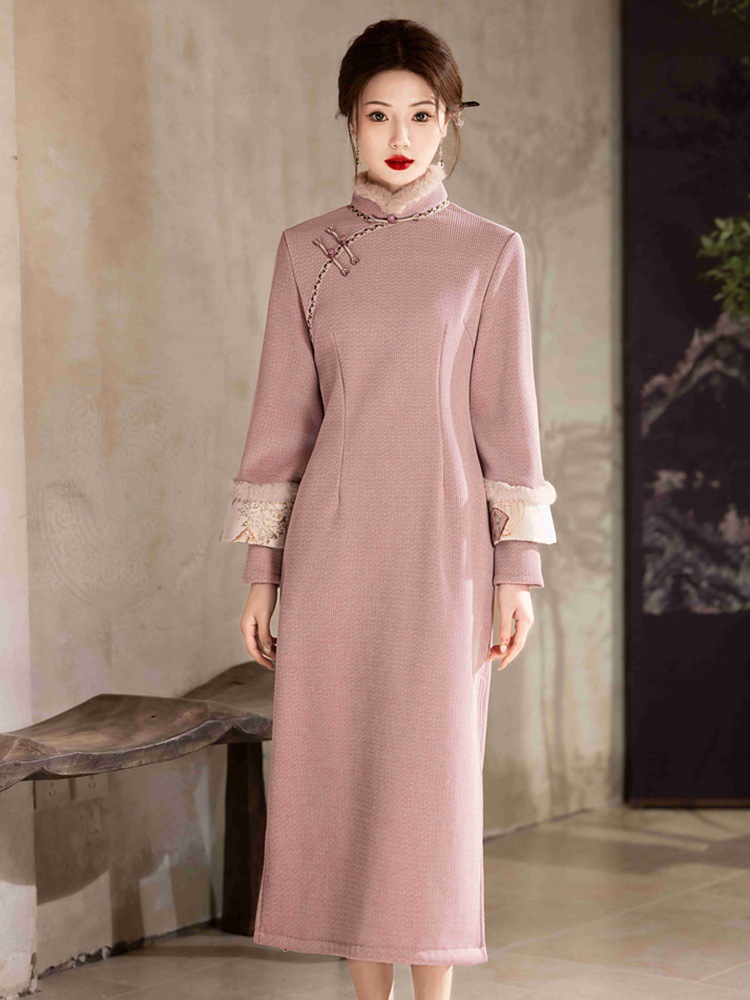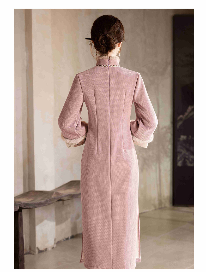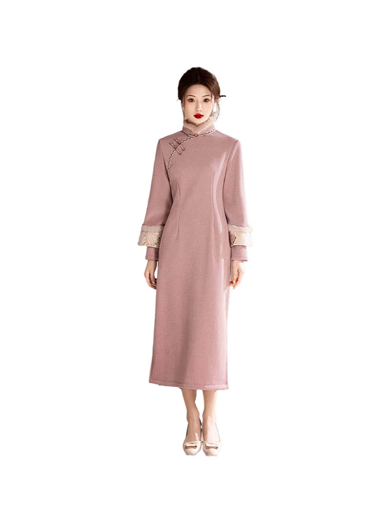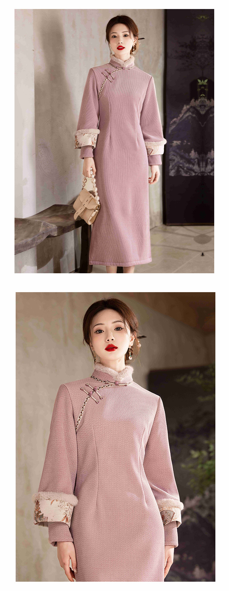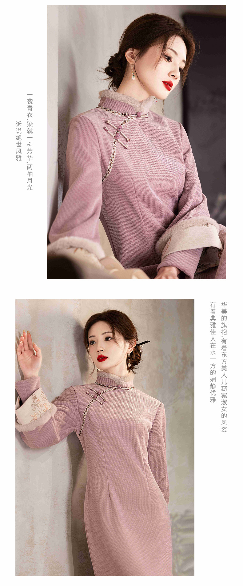 Новый китайский стиль bei zhiyun элегантный улучшенный чонсам осенний и зимний женский облегающее платье на плече