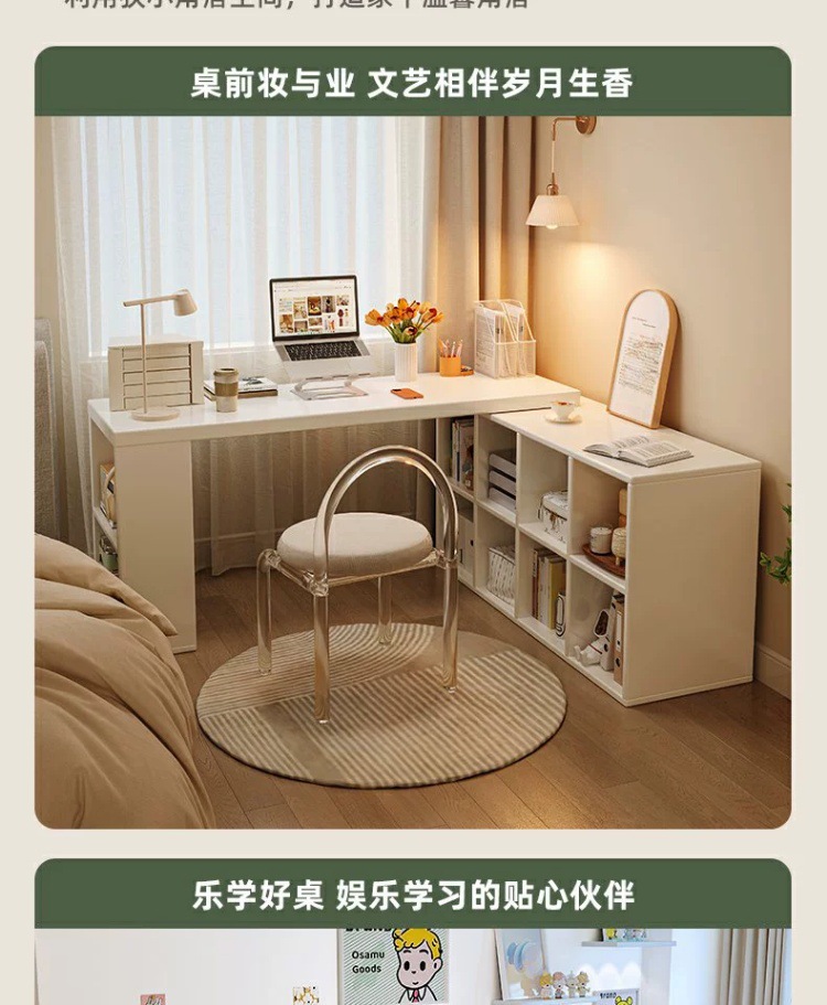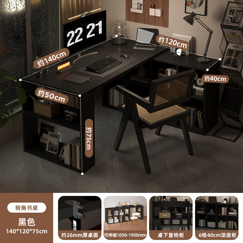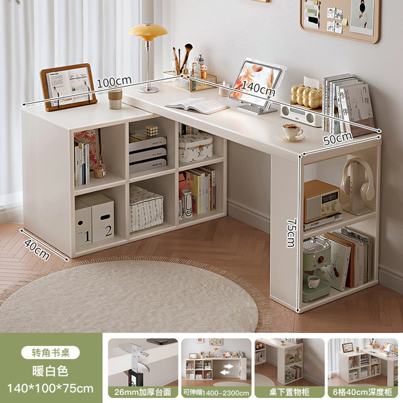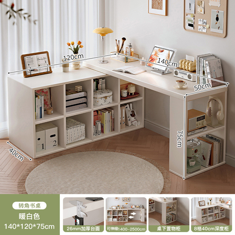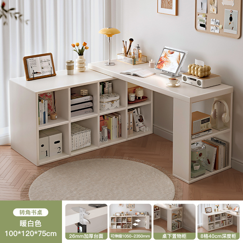 Угловой компьютерный стол из массива дерева со встроенным книжным шкафом, раскладной стол, туалетный столик для дома, письменный стол для школьниц