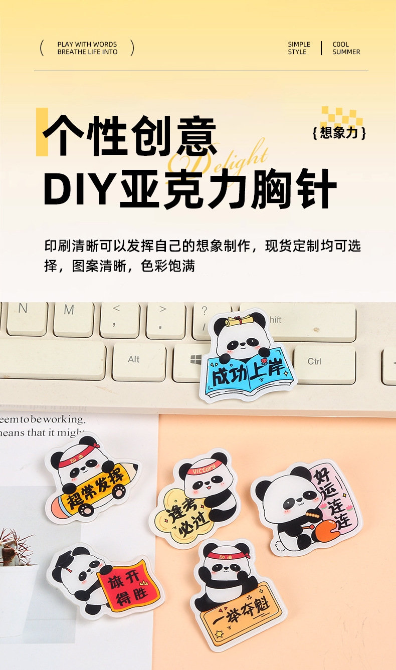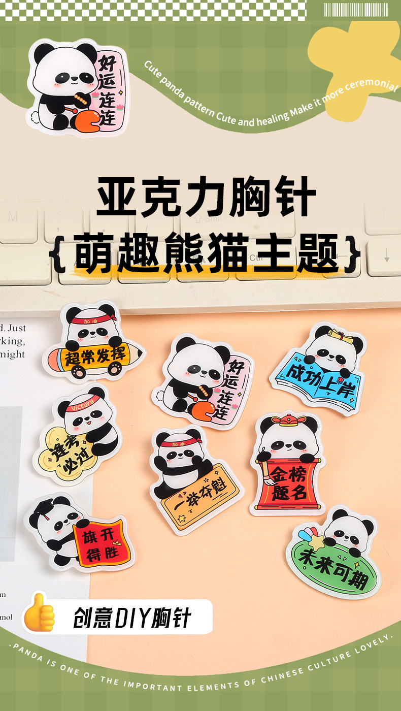 Милая акриловая брошь в виде панды с надписью «Благословение», значок для рюкзака, детский декор, подарок