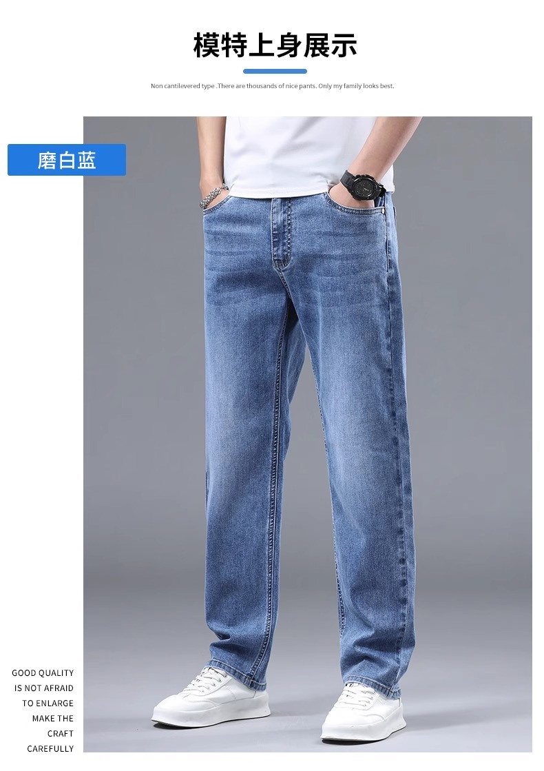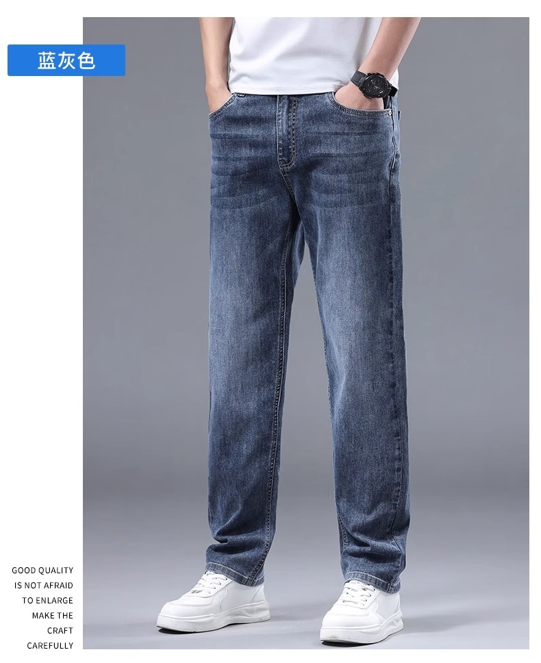 Мужские джинсы премиум-класса с эффектом потертости, весна-осень 2025, новые, свободные, прямые, повседневные, эластичные, длинные брюки для мужчин