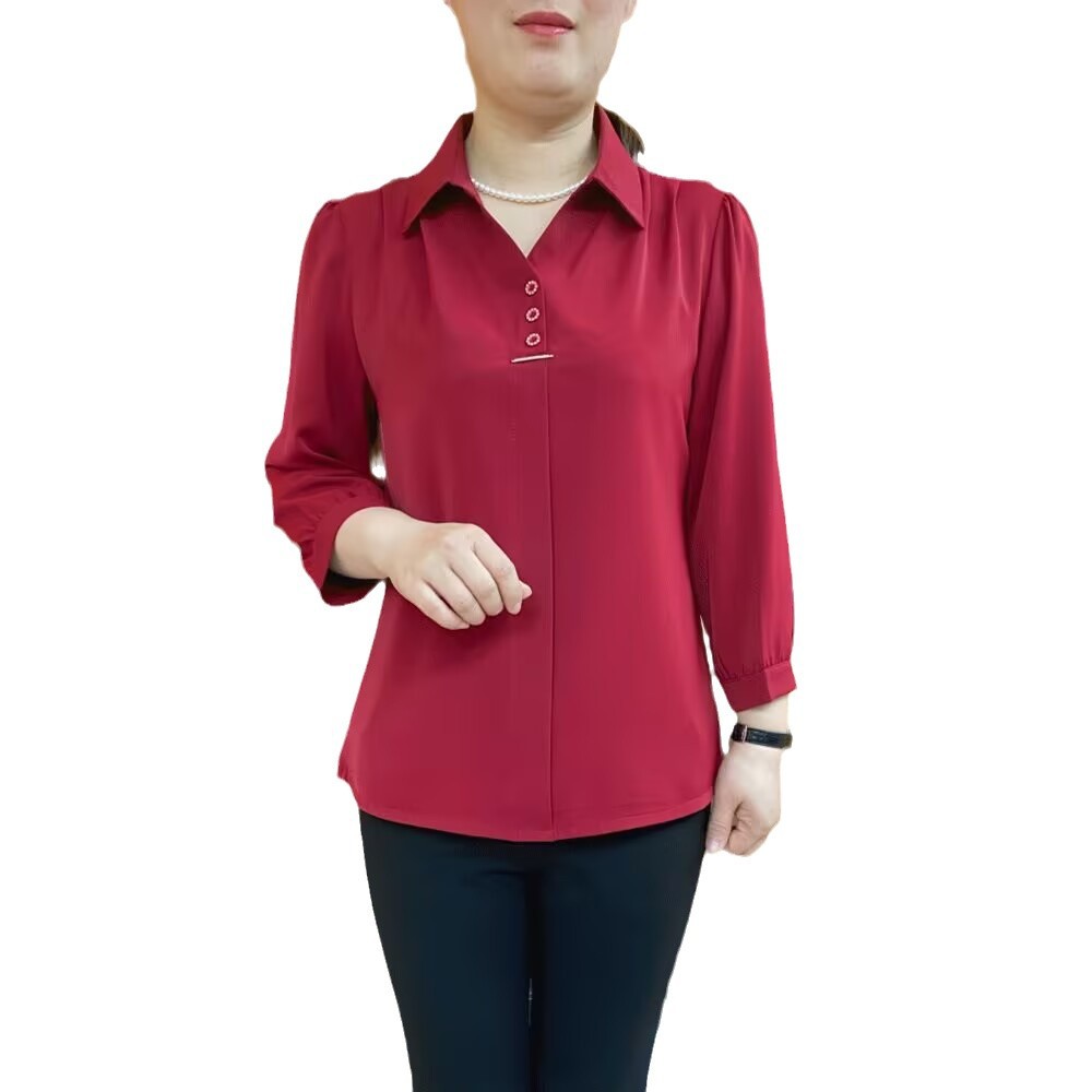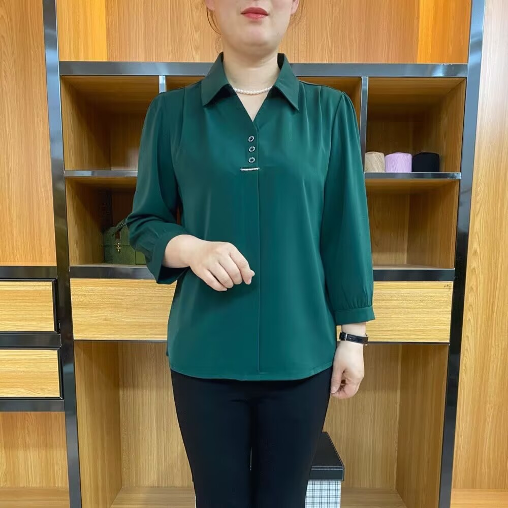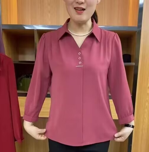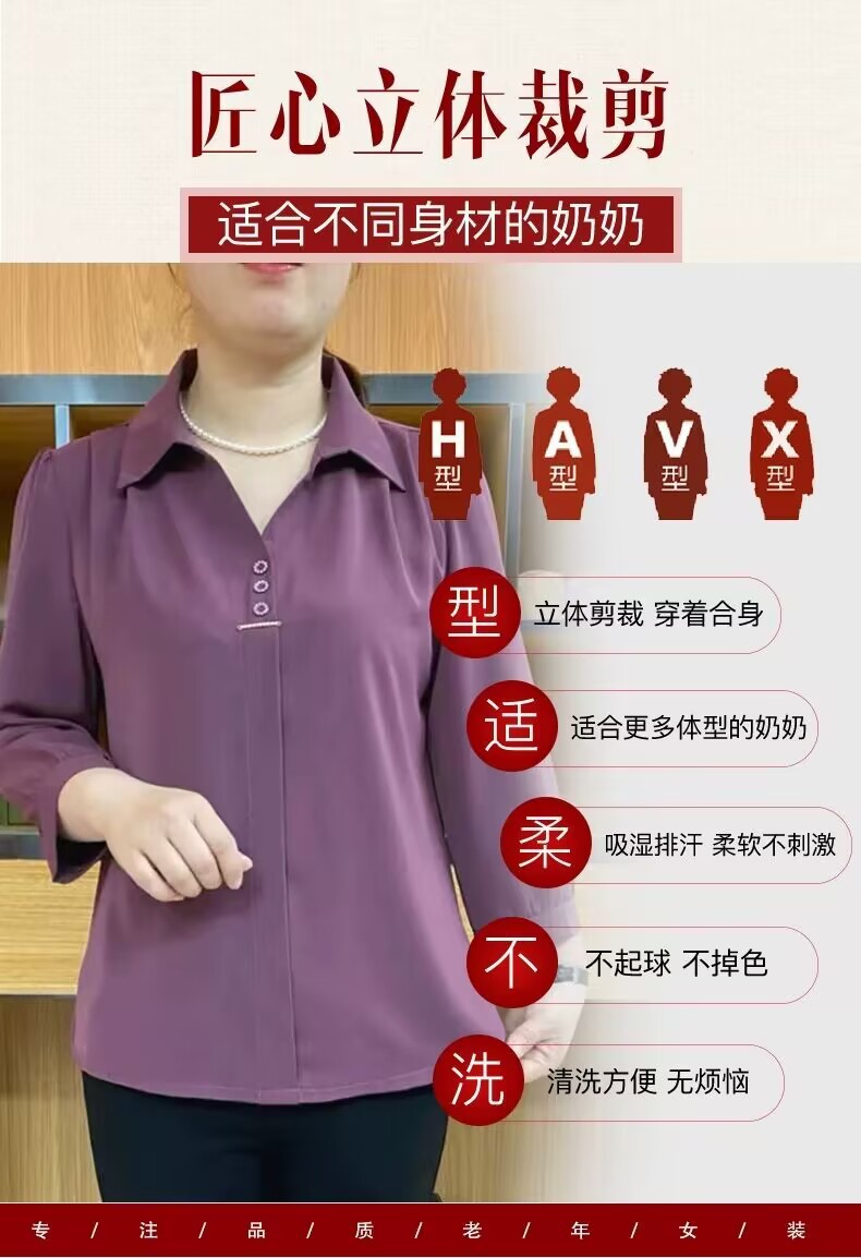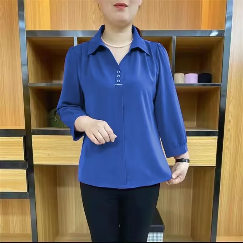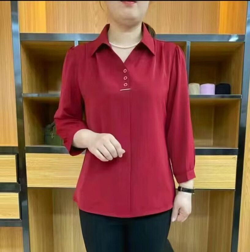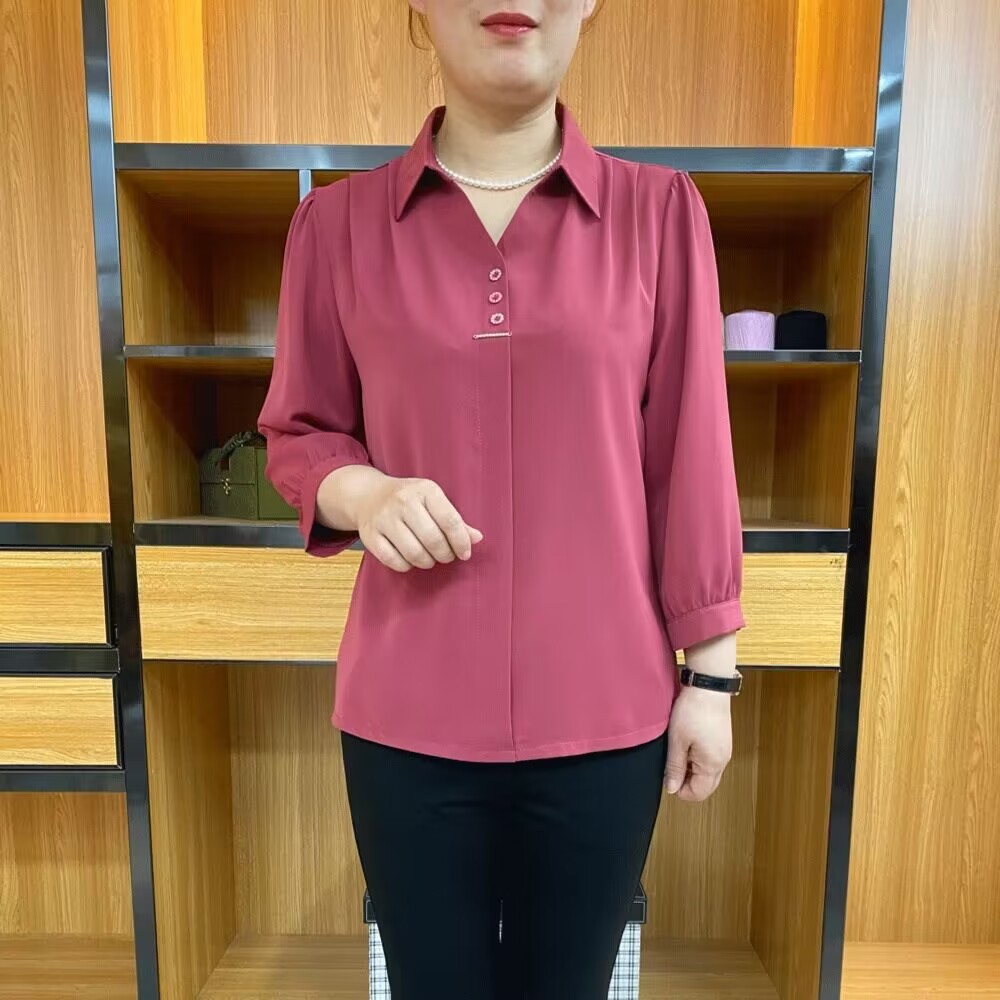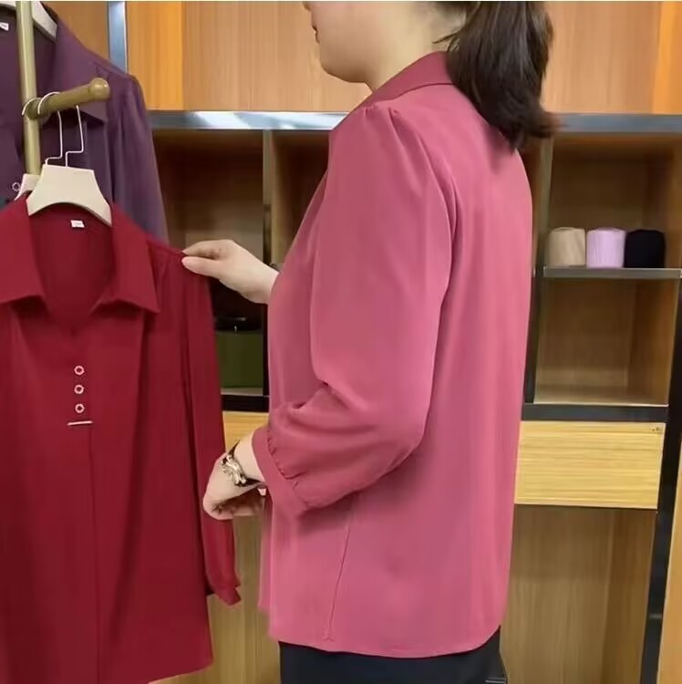 Мама одет высокого класса, дикие однотонные рубашки, большие размеры, свободные среднего и пожилого возраста, повседневная дышащая рубашка с девятью рукавами