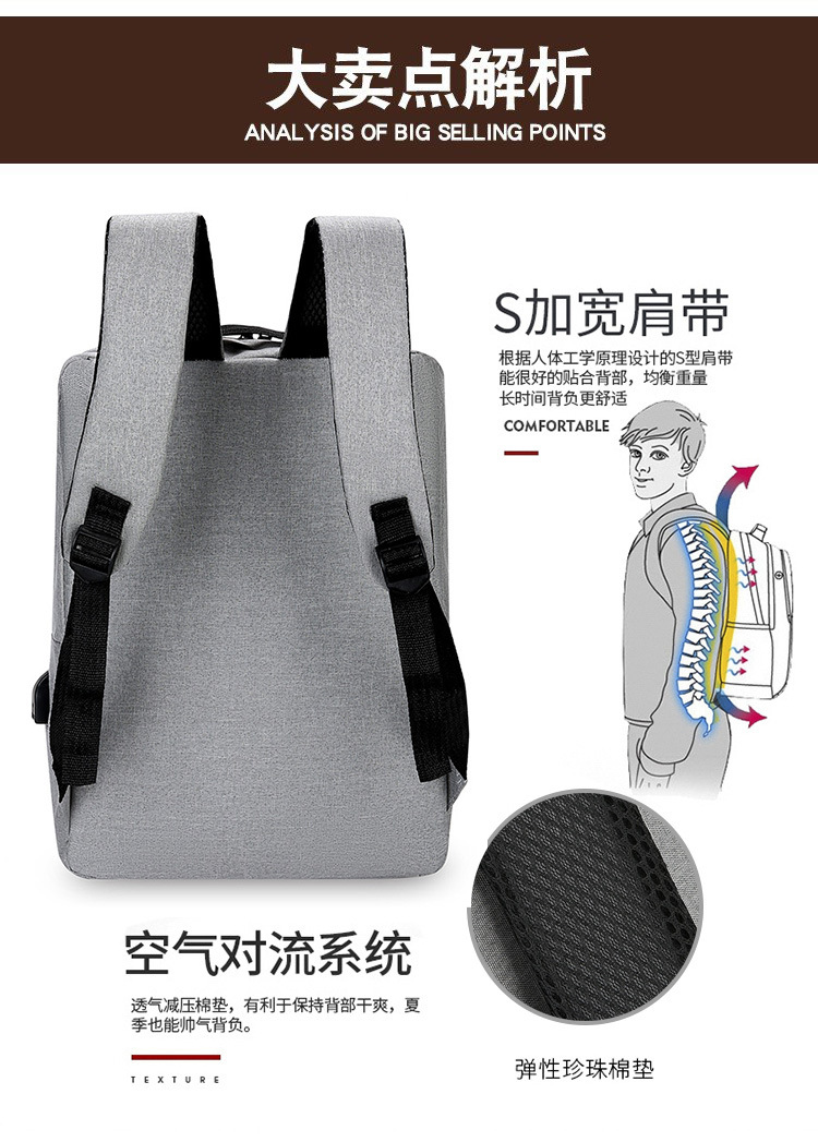 Бизнес-рюкзак Компьютерная сумка Рюкзак Офисный рюкзак Большая емкость на плечо толстая прочная прочная мужская рюкзак