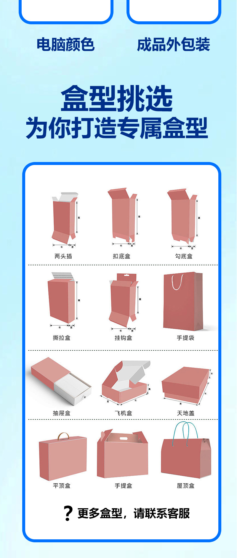 Индивидуальная подарочная коробка; Индивидуальный ящик для самолета; Индивидуальная коробка с крышкой неба и земли; Книжная коробка по индивидуальному заказу; Индивидуальный чемодан; Другие типы коробок могут быть настроены; Индивидуальная выдвижная коробка; Настройка коробки с двойным открыванием; Индивидуальные верхние и нижние коробки для карточек