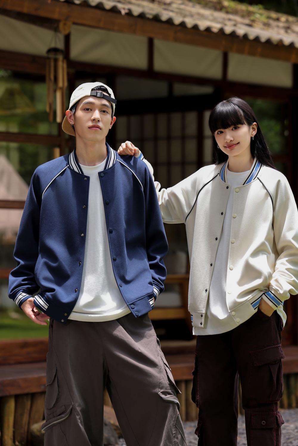 380 г ретро-прилив хлопок модный бейсбольный костюм кардиган куртка осень-зима пара стоячий воротник осень-зима застежка на молнии свитер на заказ