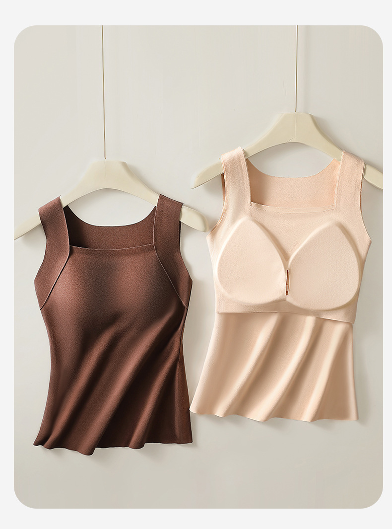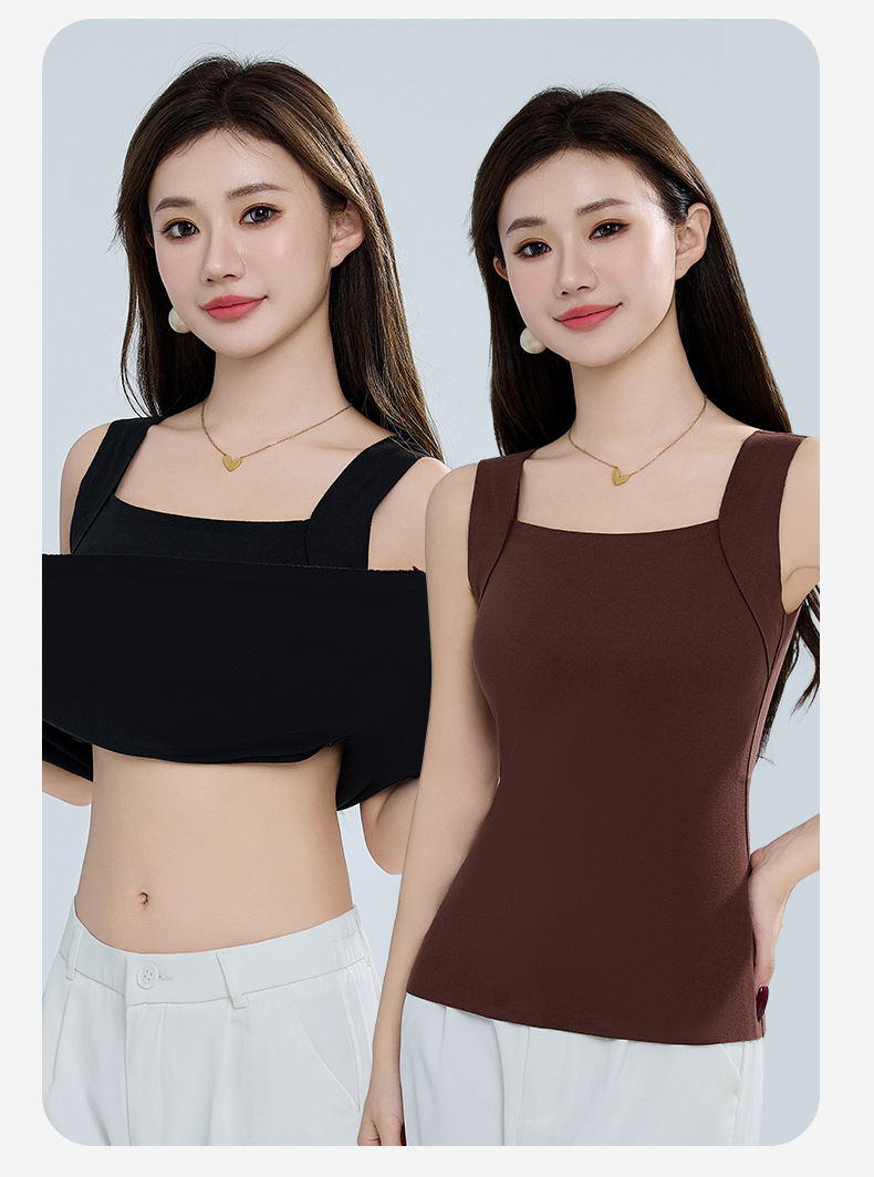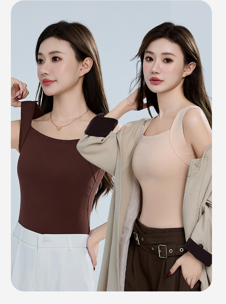 Осенне-зимний бесшовный термокомплект с квадратным вырезом и флисом, теплый жилет для ношения под одеждой, женский утепленный термотоп.