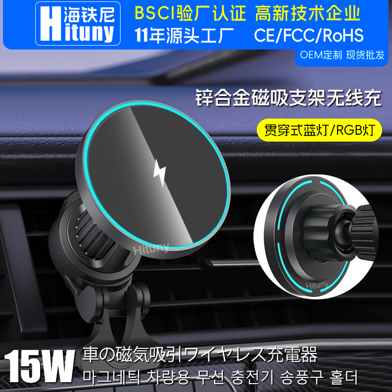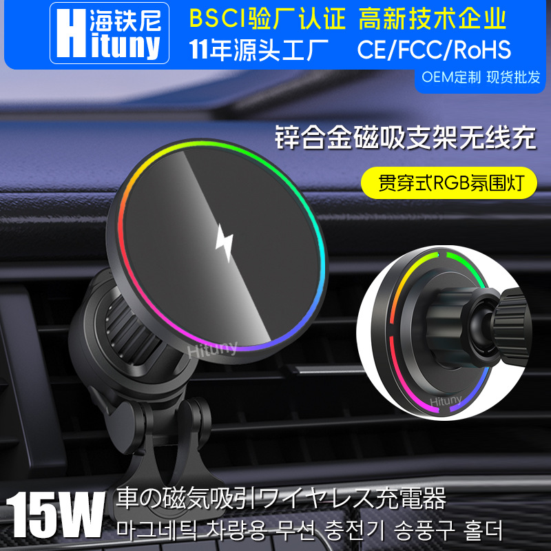 Светодиодный свет Магнитный автомобиль беспроводное зарядное устройство