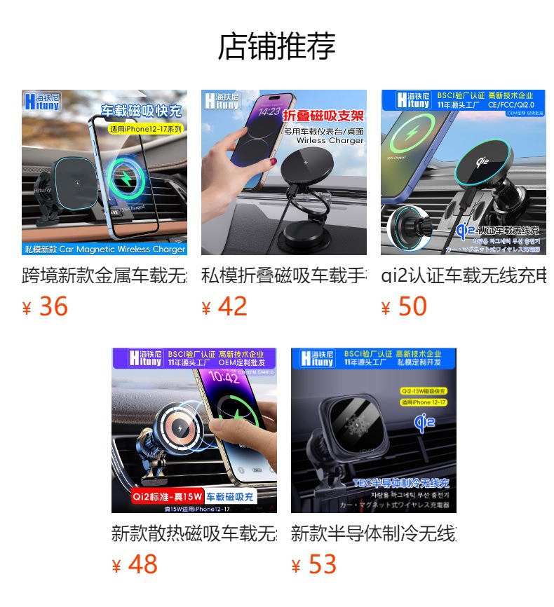 海铁尼电子Hituny(洽吉尔),已过BSCI验厂认证,工厂2000平,主要生产Qi桌面无线充,磁吸无线充qi2/qi2.2,车载无线充、数码无线充和多合一无线充电器等,支持外观设计,结构设计,生产组装,欢迎面谈及审厂。