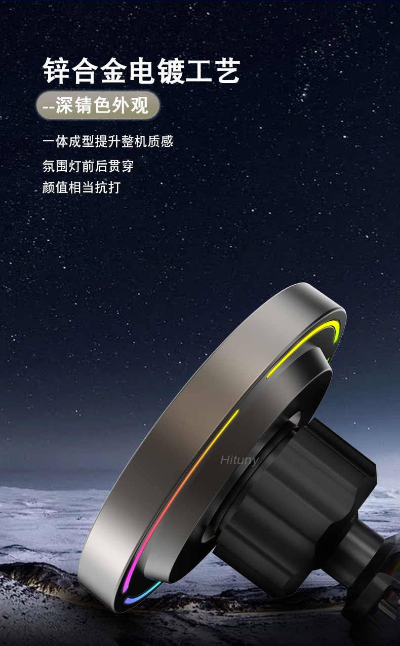 【产品卖点】外壳锌合金电镀工艺;贯穿式氛围灯效果