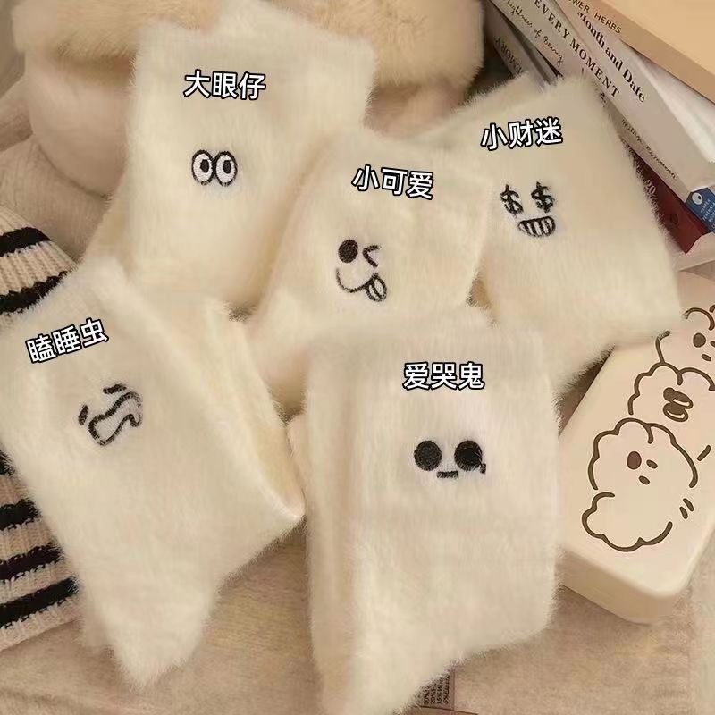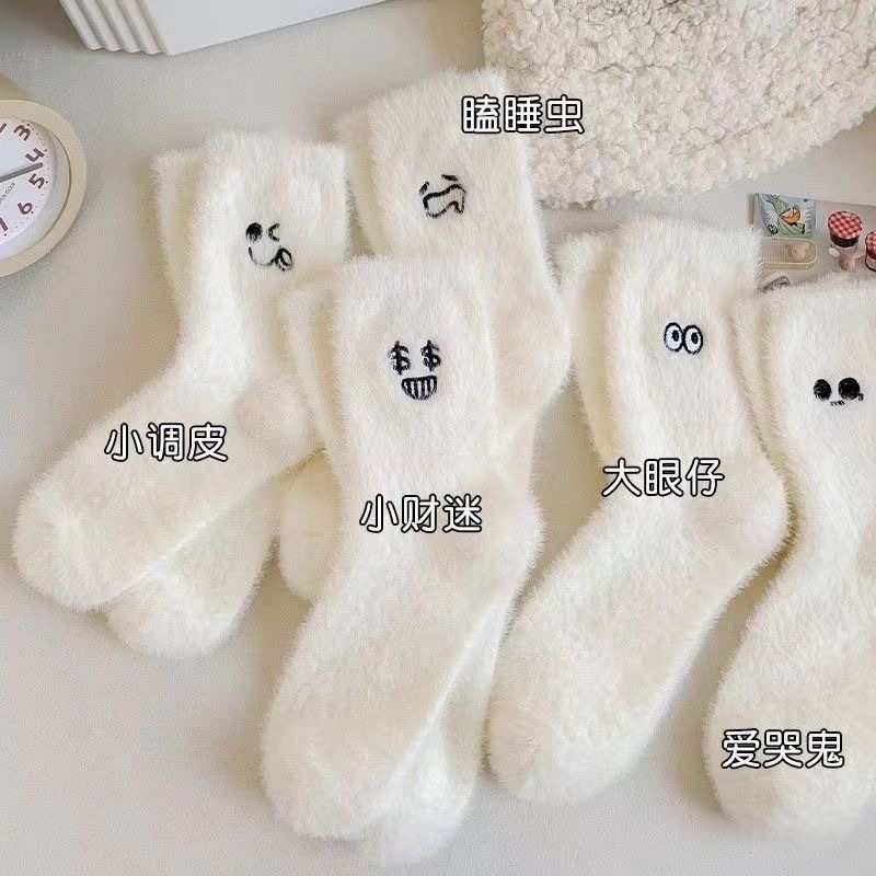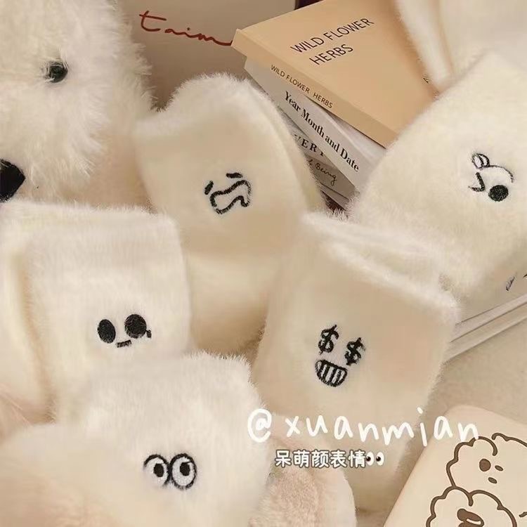 Белые носки женские осенние и зимние средние носки милые японские Rs прилив норковый бархат утолщенные теплые пушистые чулки