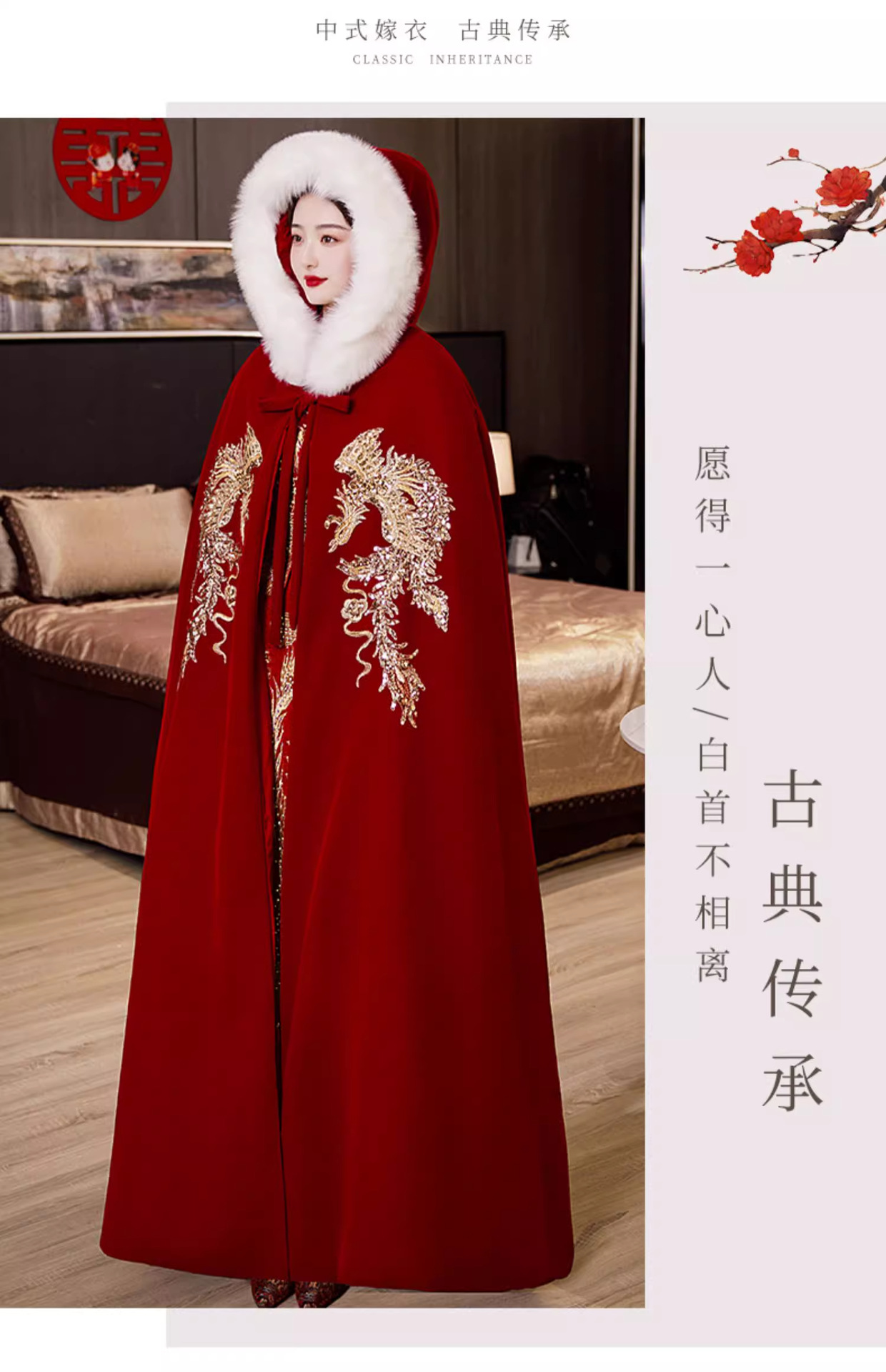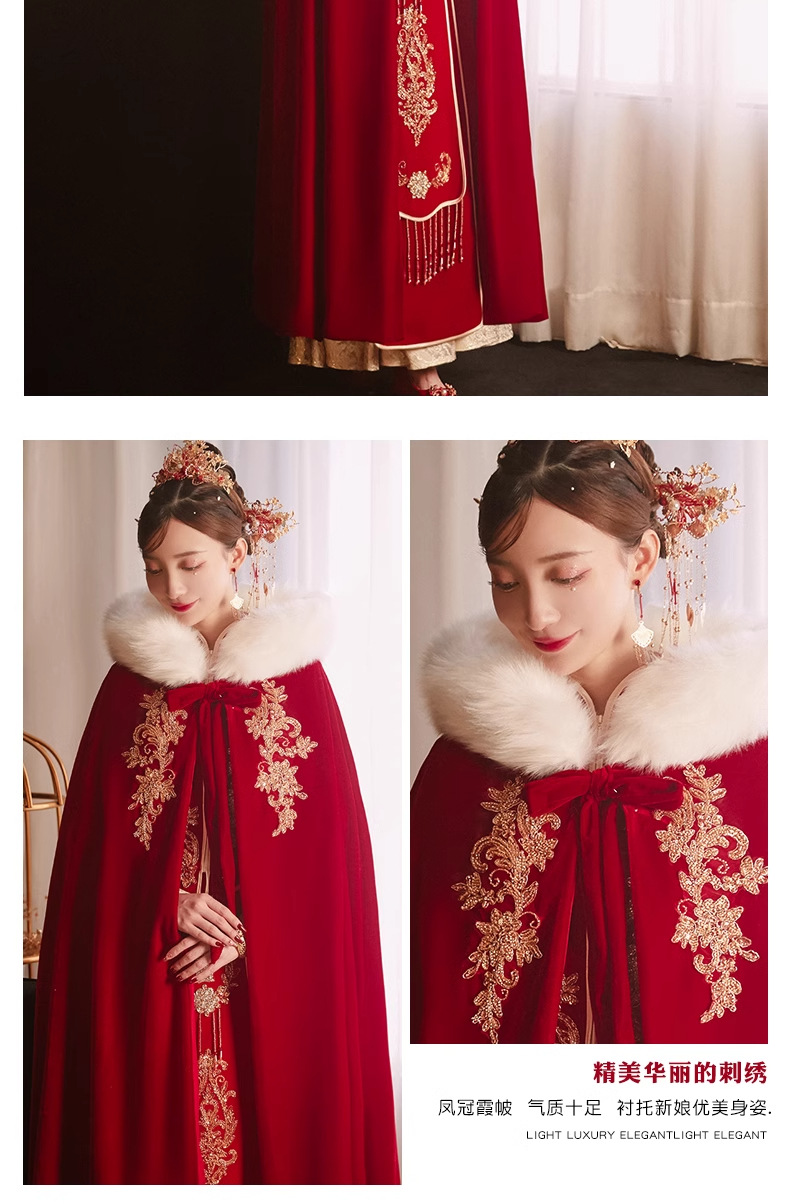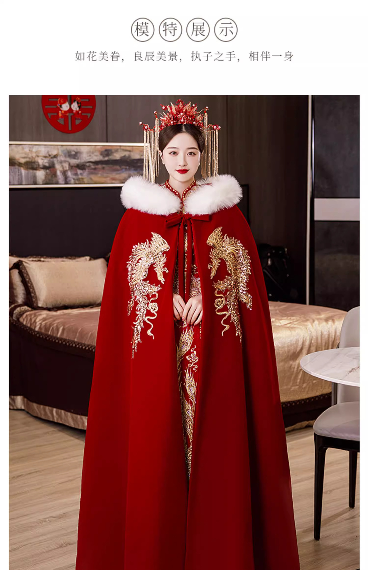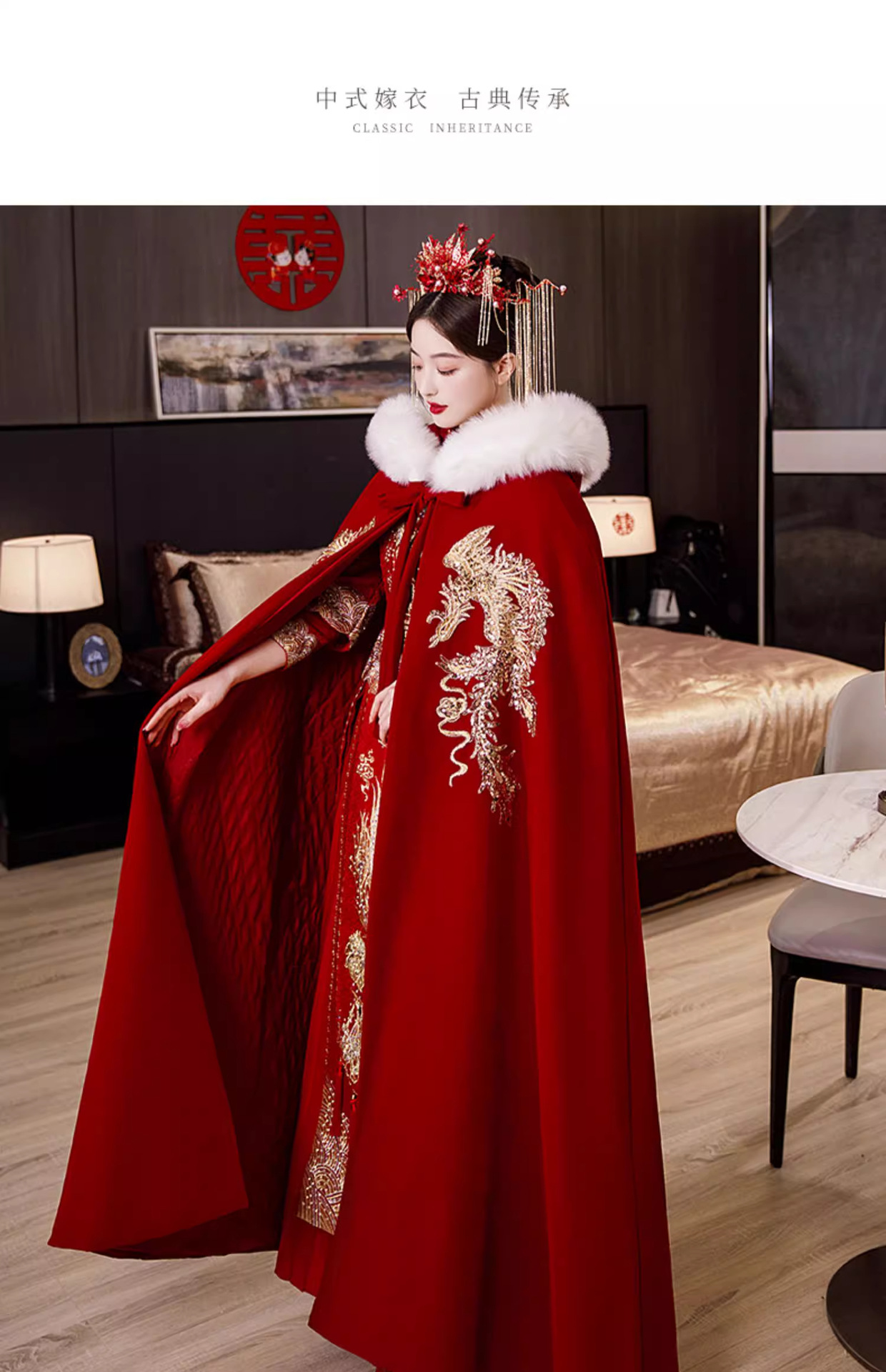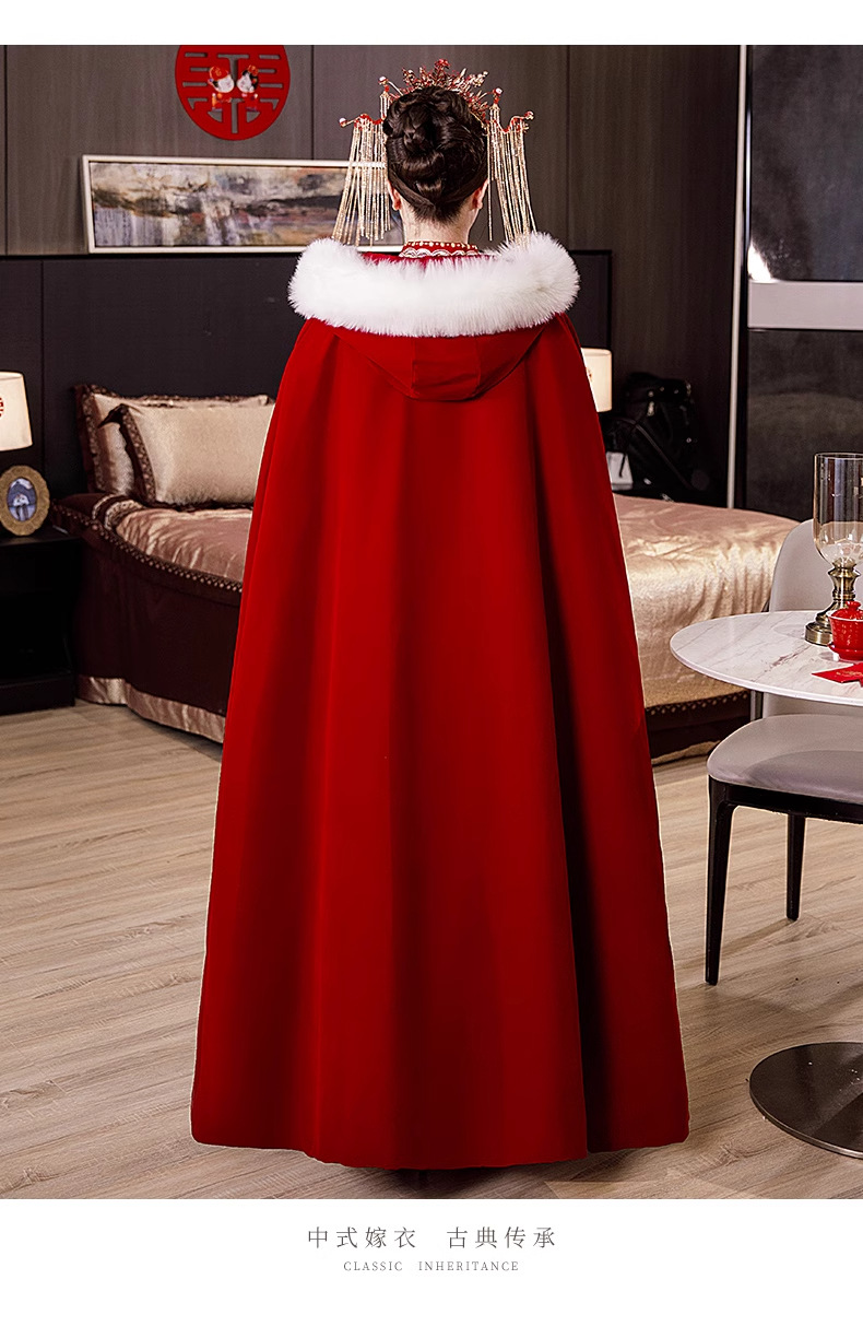 Зимний ханьфу-шаль, плащ-накидка в стиле сюэ, китайский свадебный плащ для невесты на флисовой подкладке, женский длинный красный плащ с вышивкой