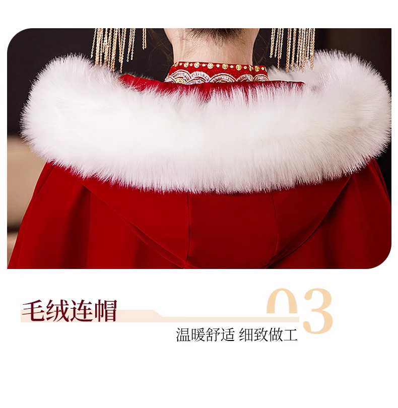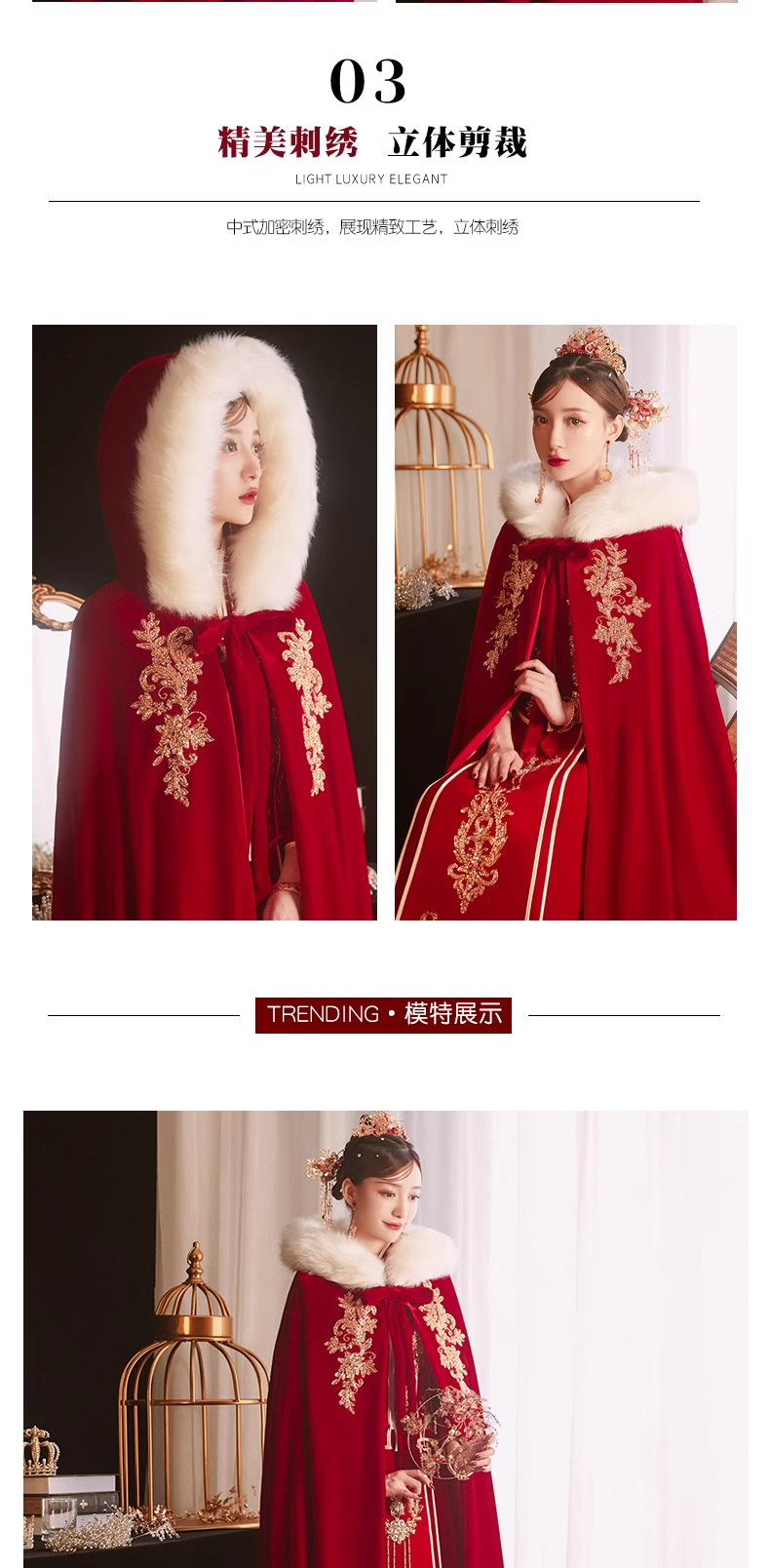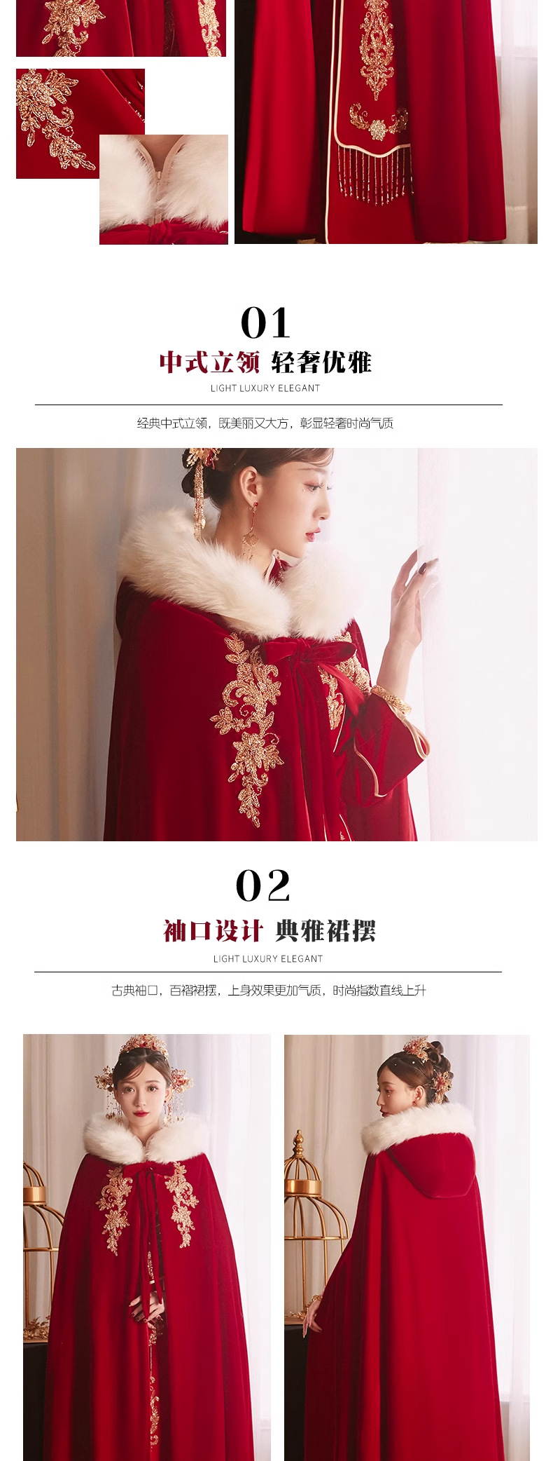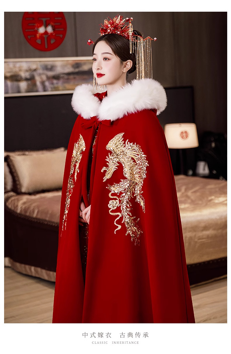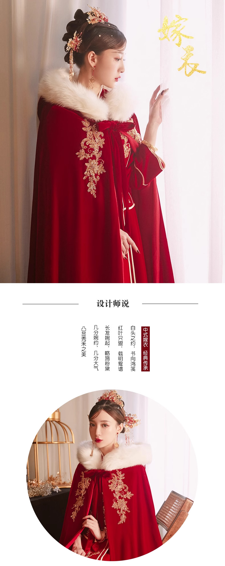 Зимний ханьфу-шаль, плащ-накидка в стиле сюэ, китайский свадебный плащ для невесты на флисовой подкладке, женский длинный красный плащ с вышивкой