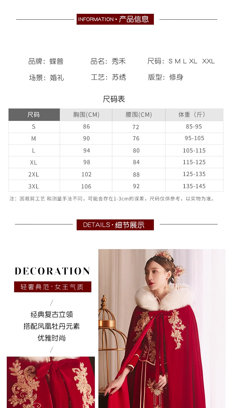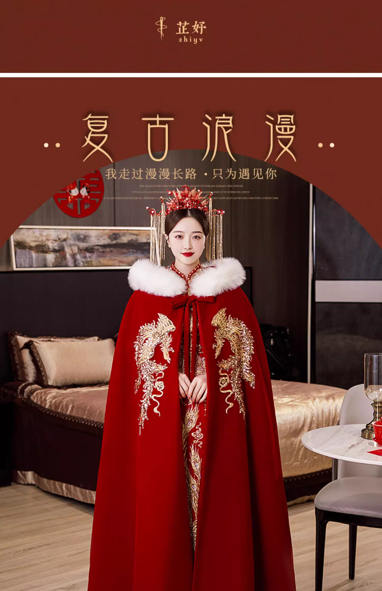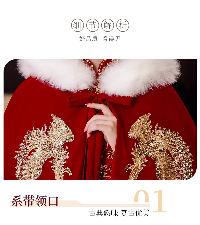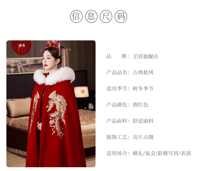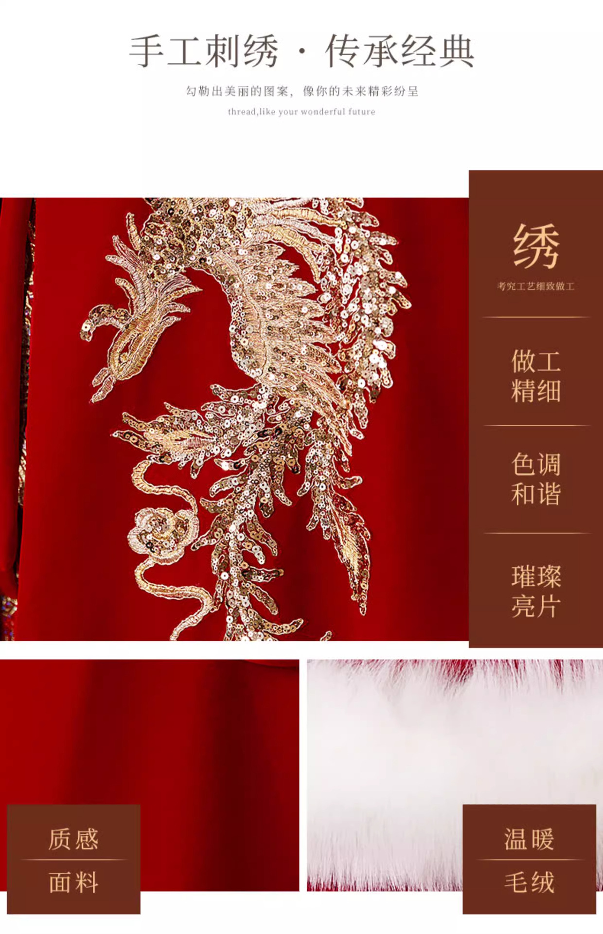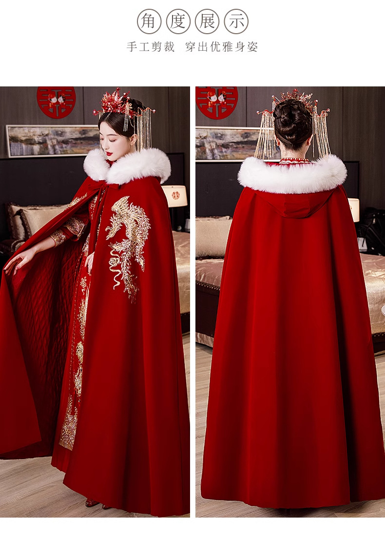 Зимний ханьфу-шаль, плащ-накидка в стиле сюэ, китайский свадебный плащ для невесты на флисовой подкладке, женский длинный красный плащ с вышивкой