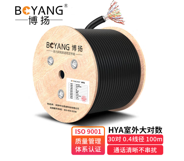 博扬 室外大对数电缆30对 三类电话大对数 语音通信大对数线缆HYA30*2*0.4线径100米BY-Cat3-SW30X-100M*1*合格证