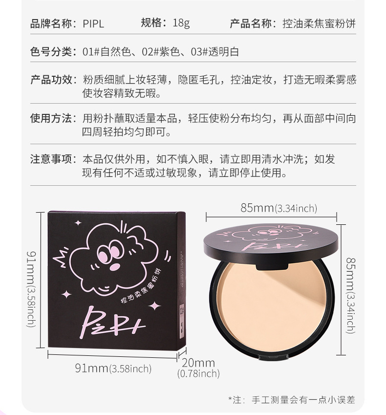 PIPL Moujiao Ding Makeover Порошок Макияж Макияж Контрольный Масло Контроль Водонепроницаемый Потостойкий Не снимает макияж Большой Порошок через границу