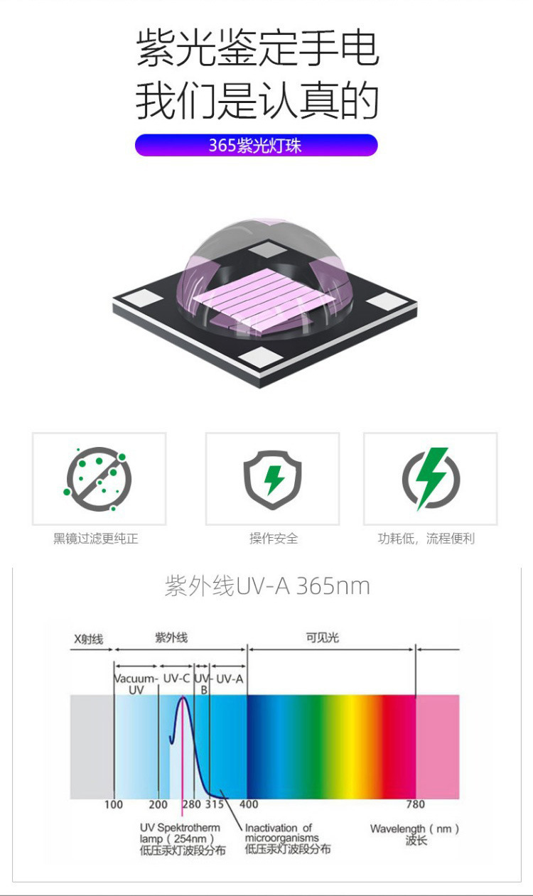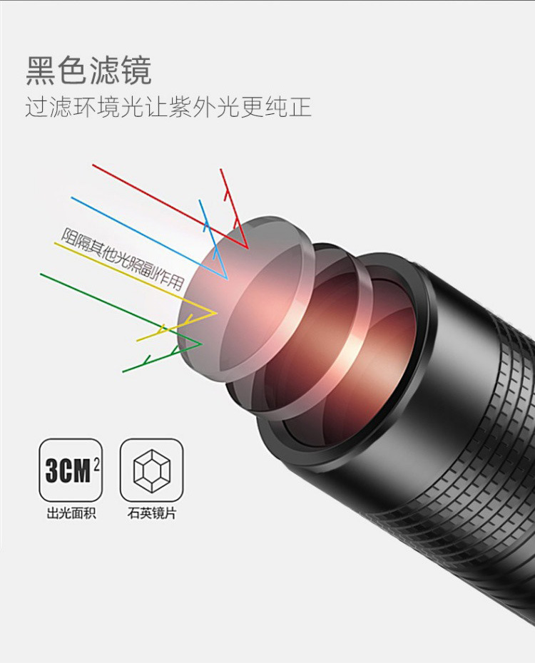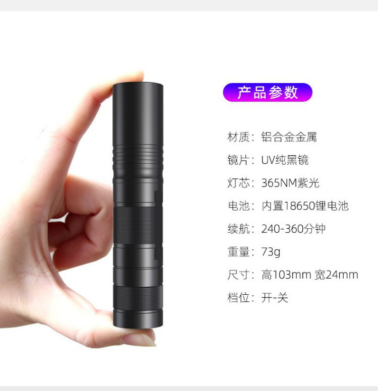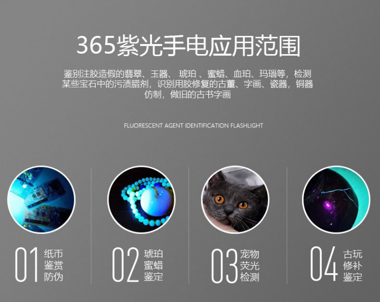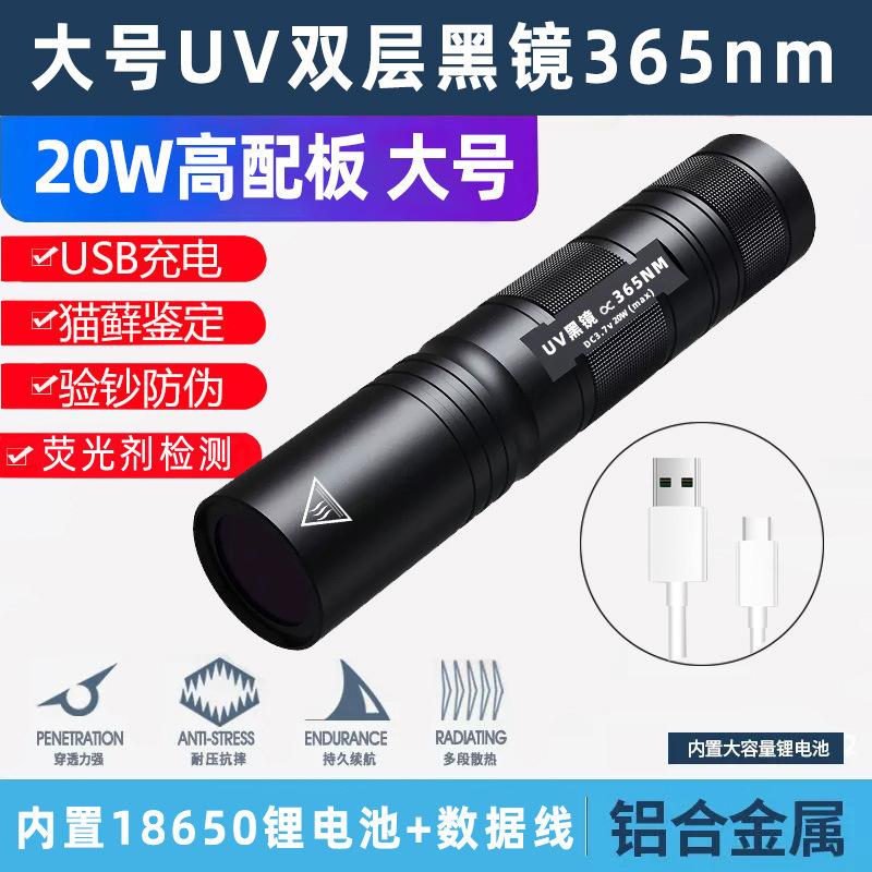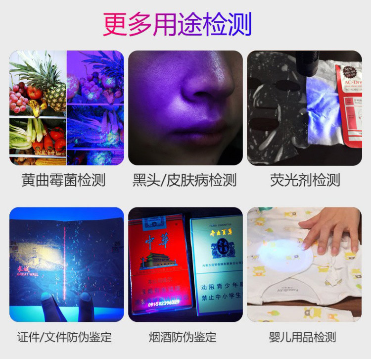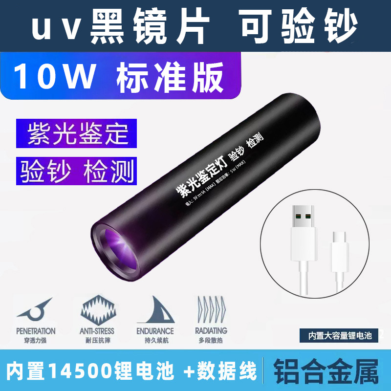3 Вт обычная линза белого света 14500 прямая зарядка [без функции обнаружения]; 3 Вт обычная линза фиолетового света 14500 прямая зарядка [функция обнаружения 395 нм]; 5 Вт обычные линзы фиолетового света 14500 прямая зарядка; 10 Вт черное зеркало УФ-фиолетовое освещение 14500 прямая зарядка; 20 Вт, большое, 365 нм-УФ, черное зеркало, 18650, блокирует помеховой свет