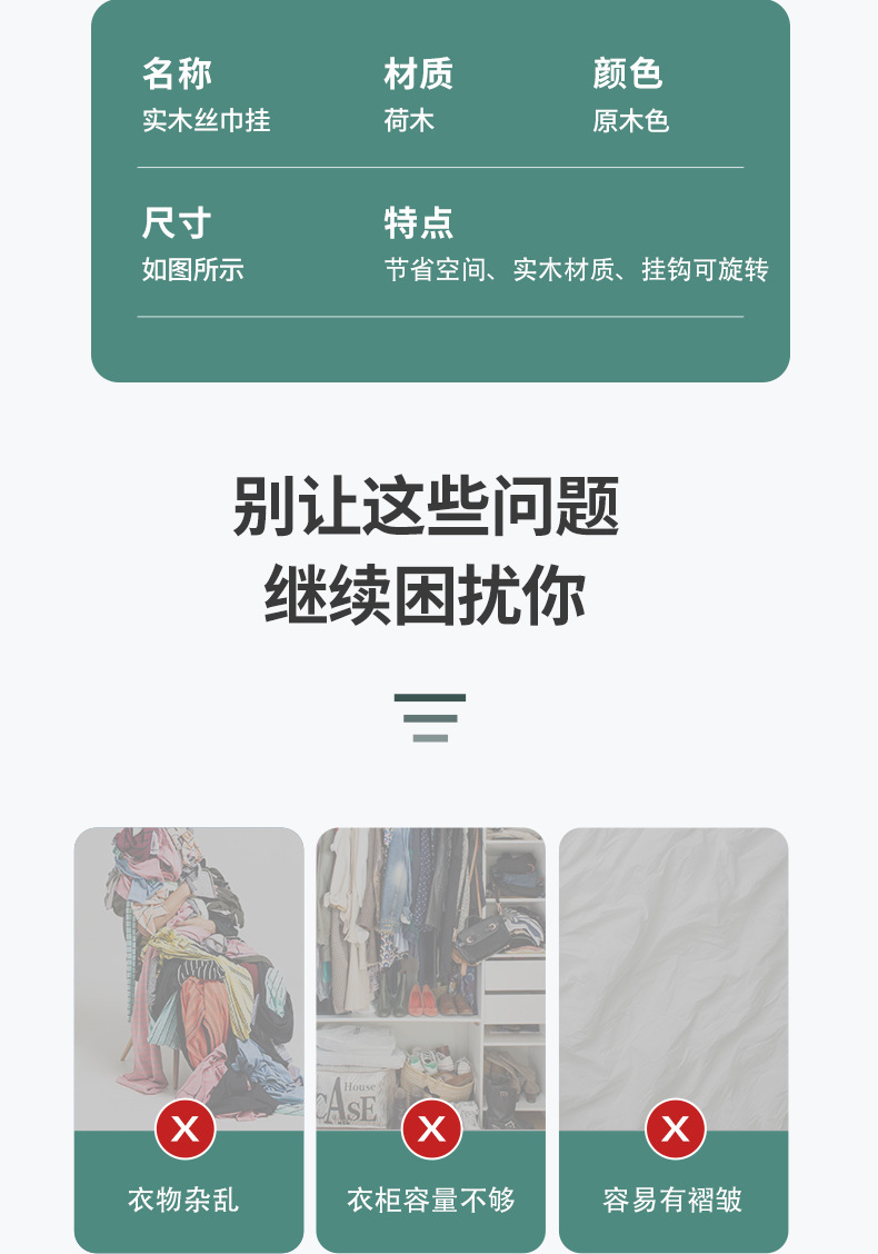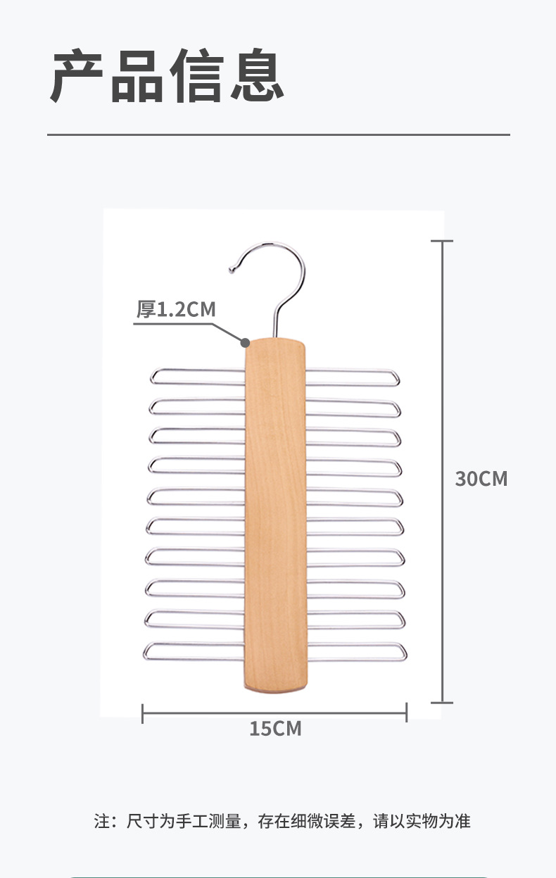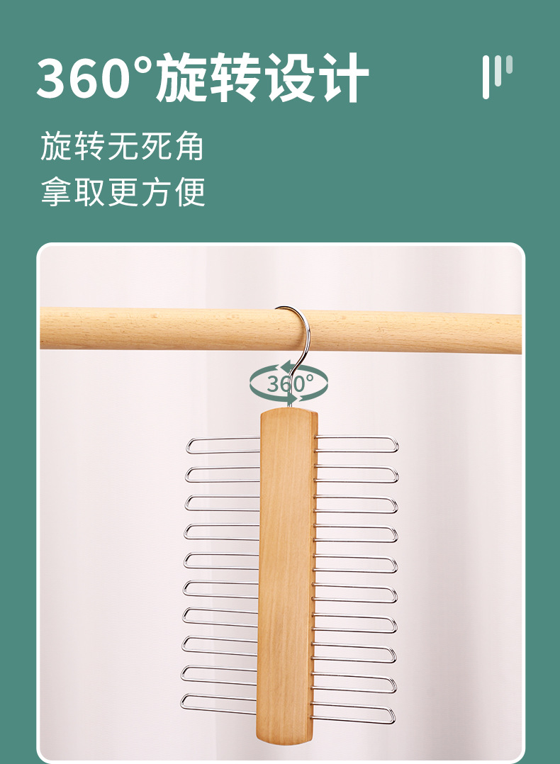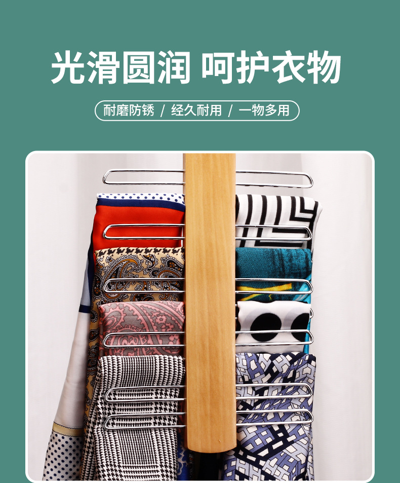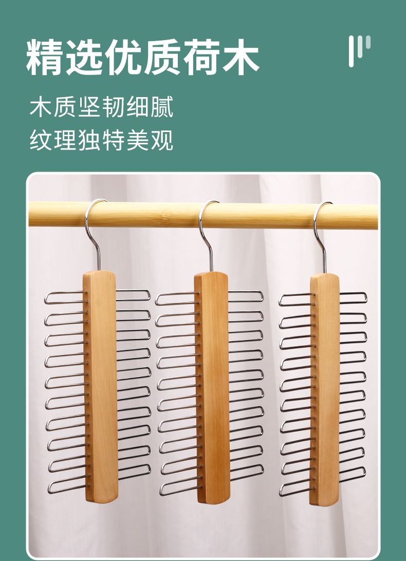 Многофункциональная деревянная вешалка для галстуков и шарфов из массива дерева, не оставляющая следов, нескользящая, для трансграничной торговли, хит продаж