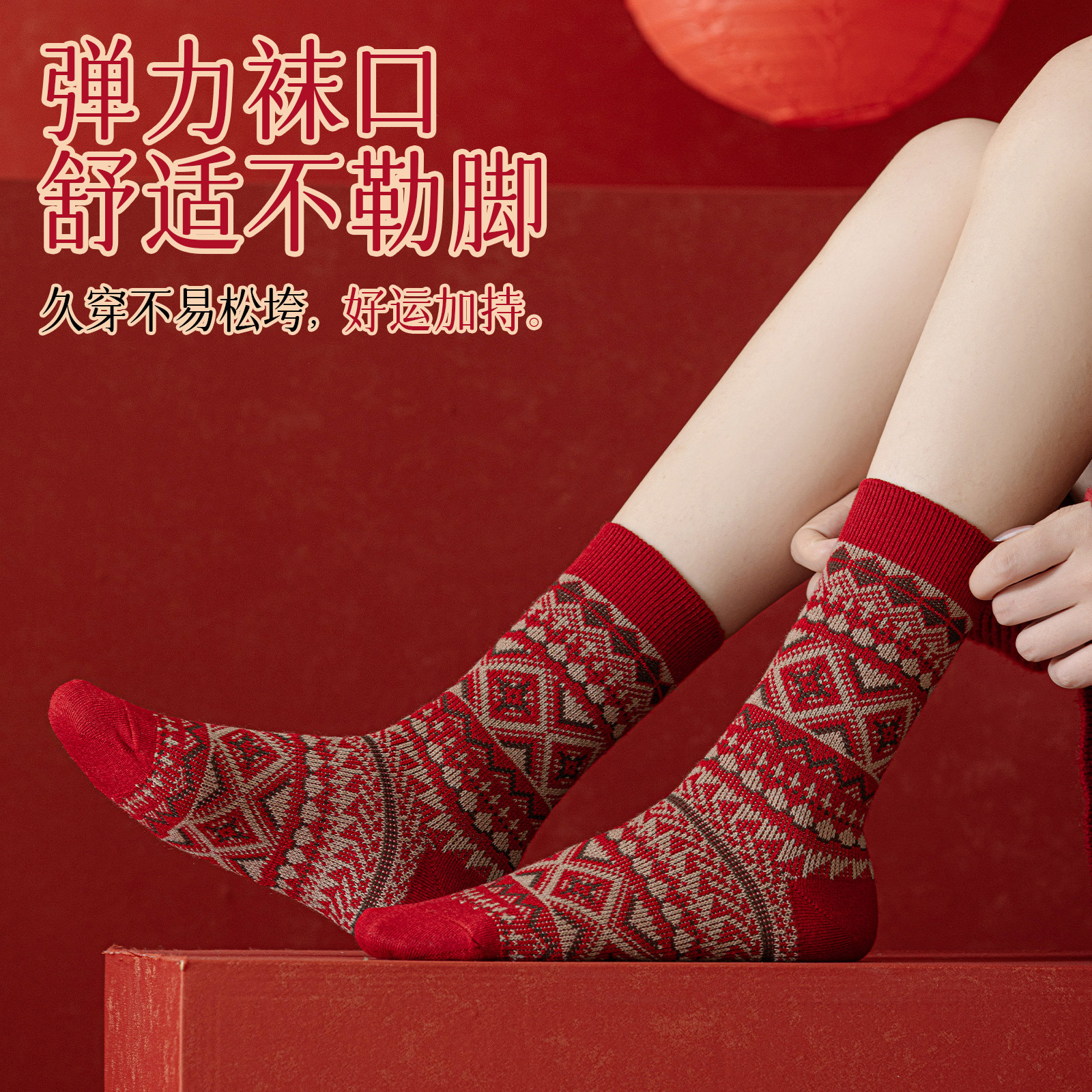 Носки женские красные «Год Лошади», осенне-зимние, средней длины, в этническом стиле, универсальные, праздничные, на удачу, оптом