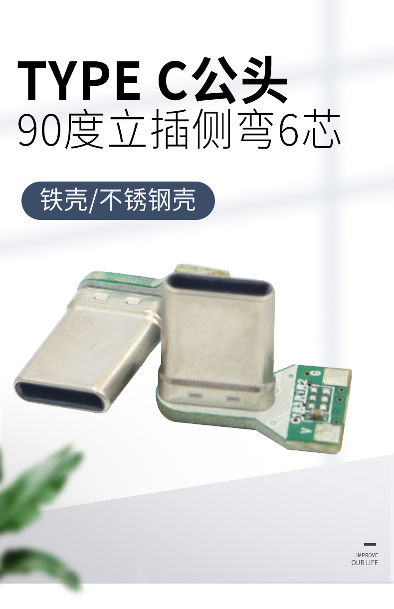 TYPE C Sidely головка 90 градусов вертикальный изгиб 6 сердечников паяльная линия USB кабель для зарядки данных мобильного телефона быстрая зарядка сварного провода