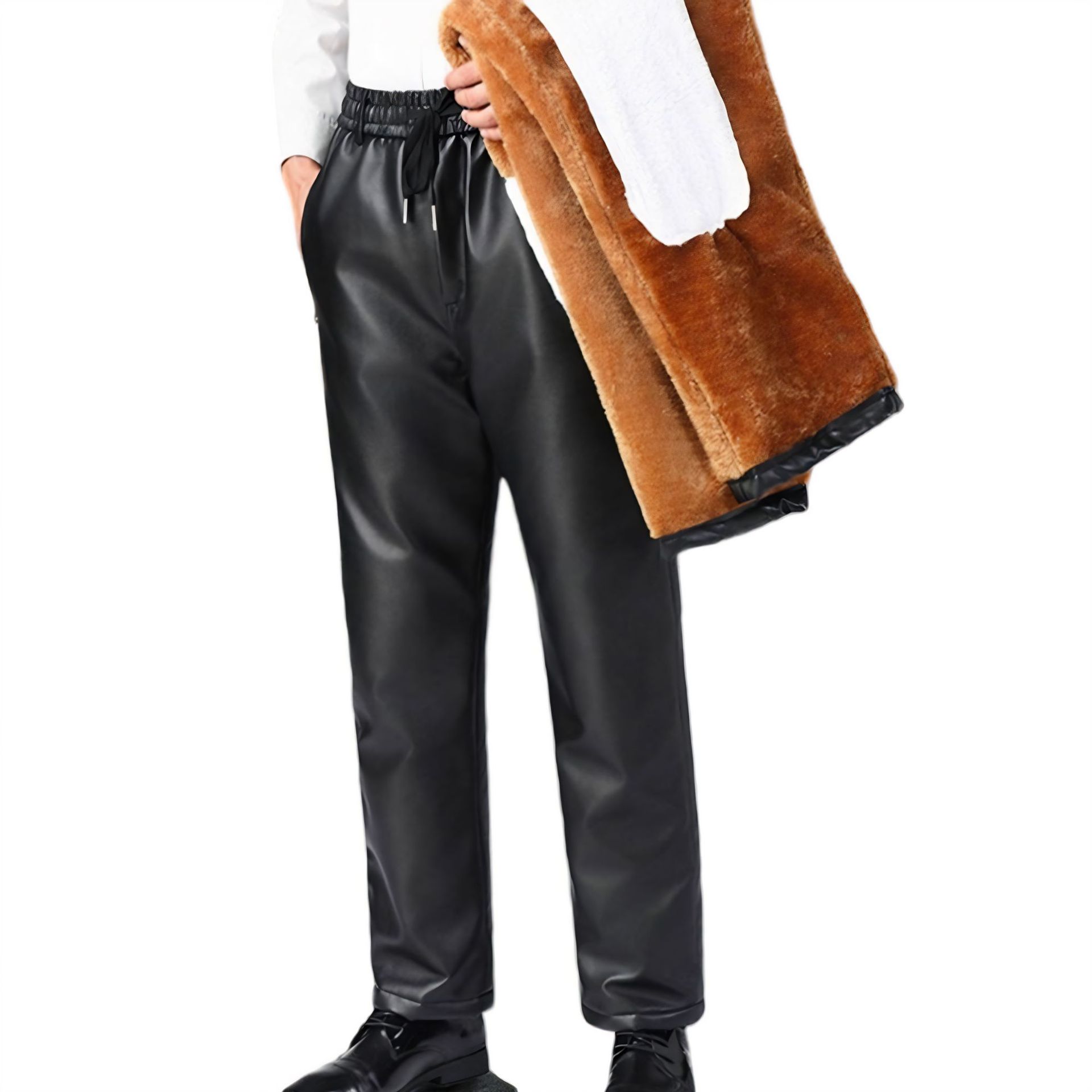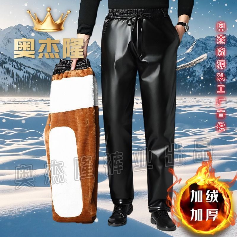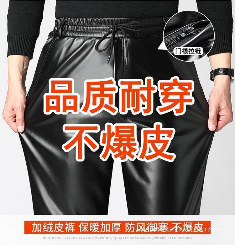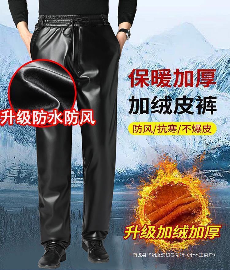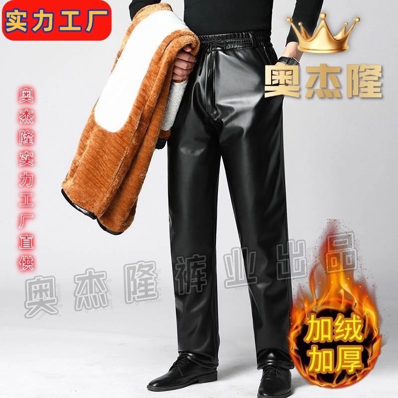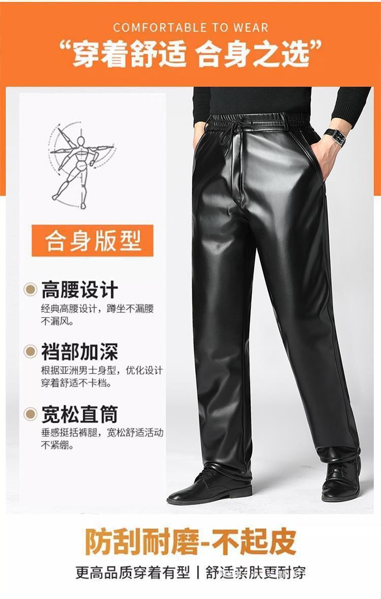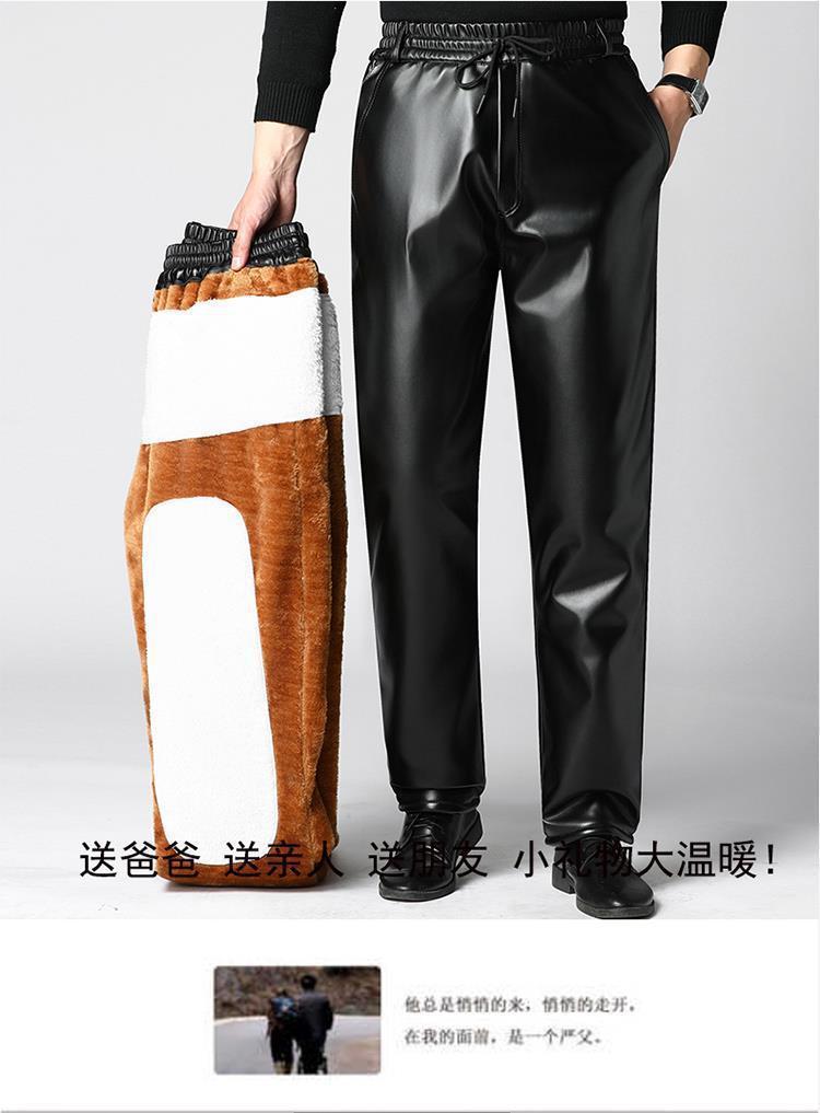 Мужские кожаные брюки с бархатным утолщением зимой