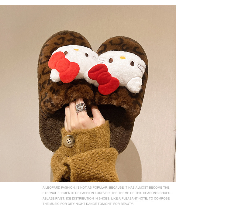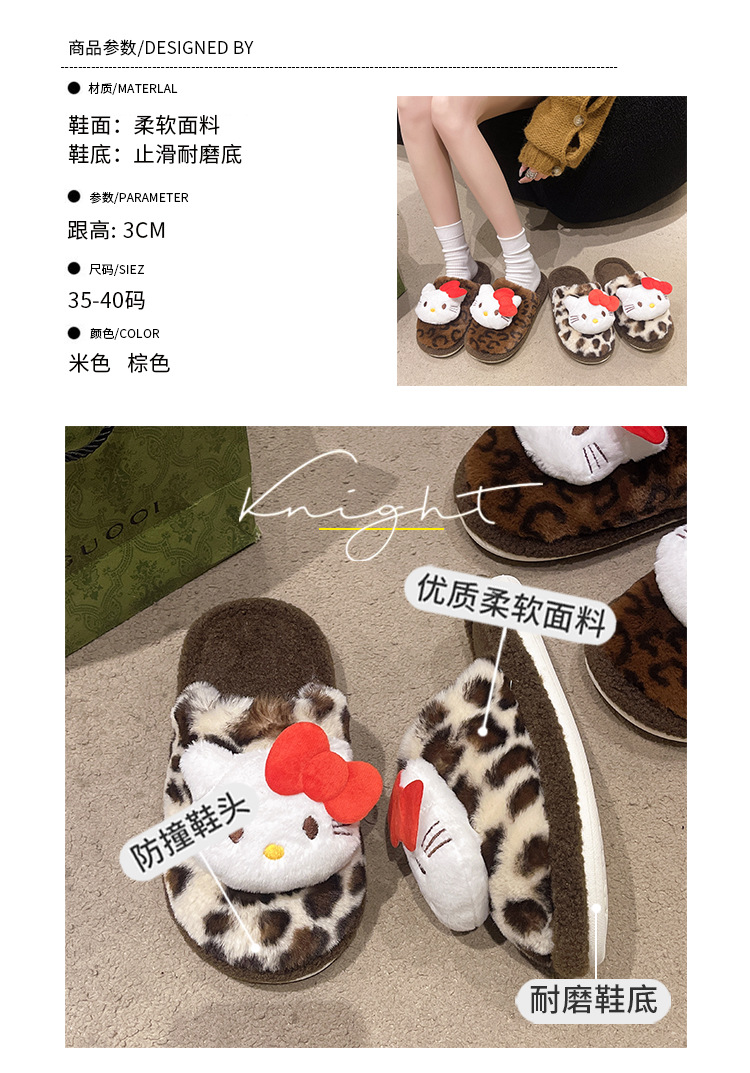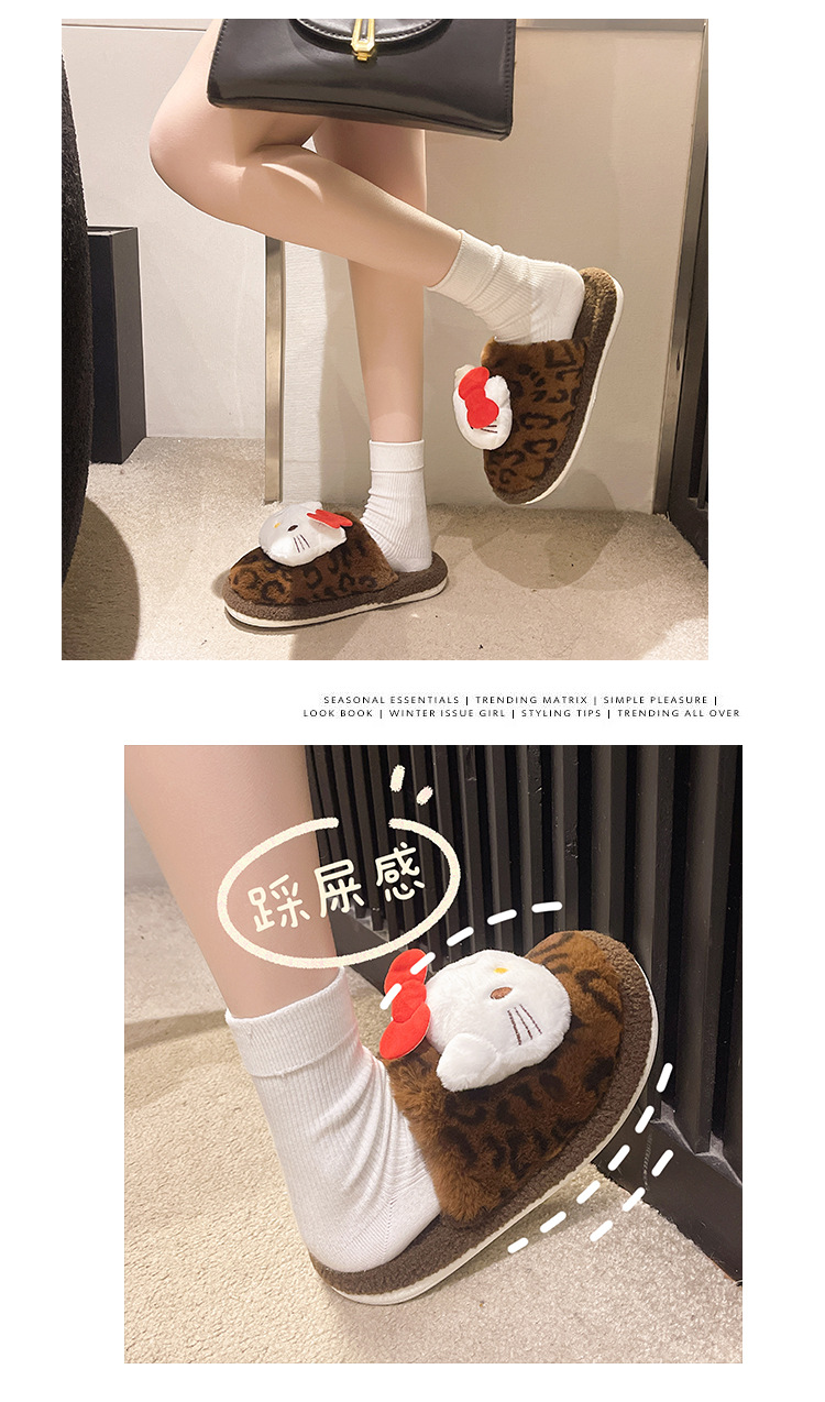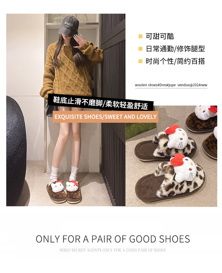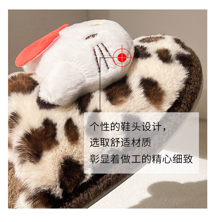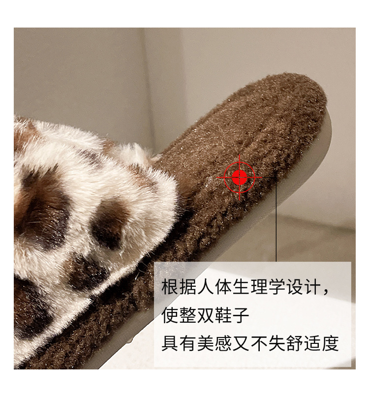 Удобный леопардовый узор нишевые шерстяные тапочки домашний интерьер противоскользящий багажный буксир женский 2024 новый осенний зимний хлопчатобумажный буксир
