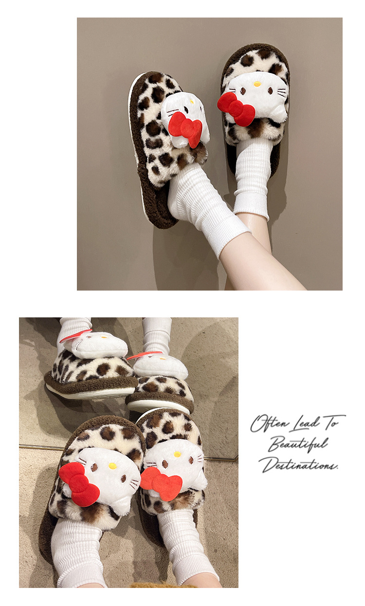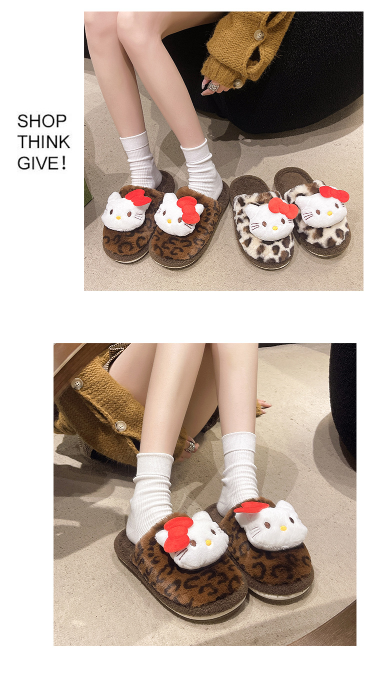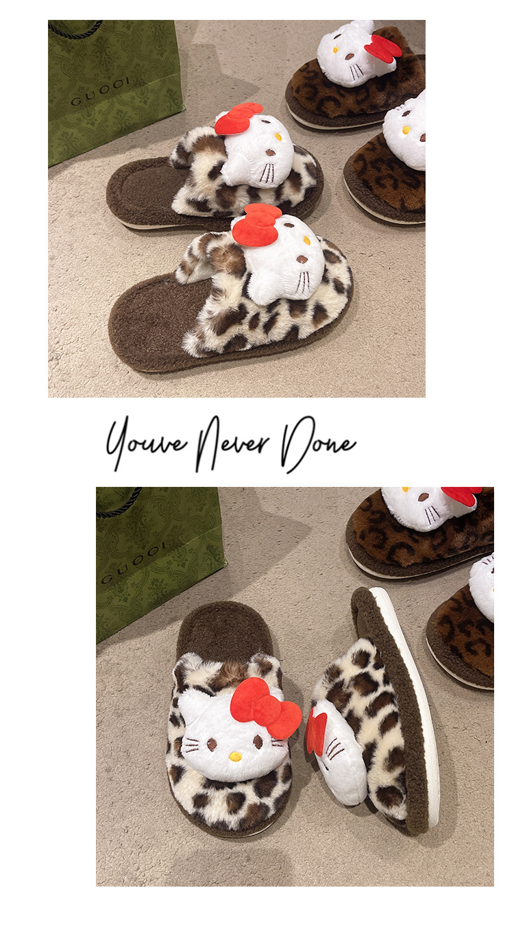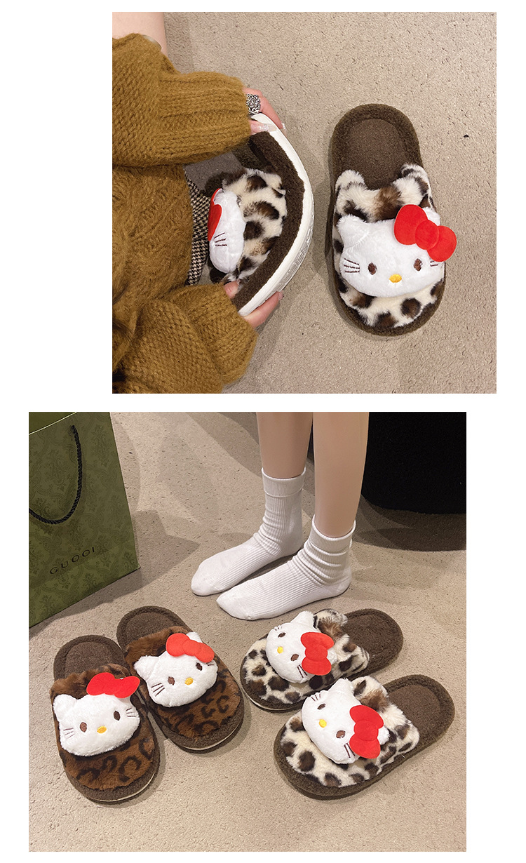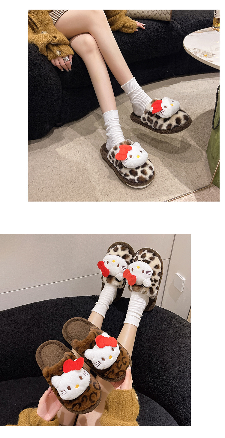 Удобный леопардовый узор нишевые шерстяные тапочки домашний интерьер противоскользящий багажный буксир женский 2024 новый осенний зимний хлопчатобумажный буксир