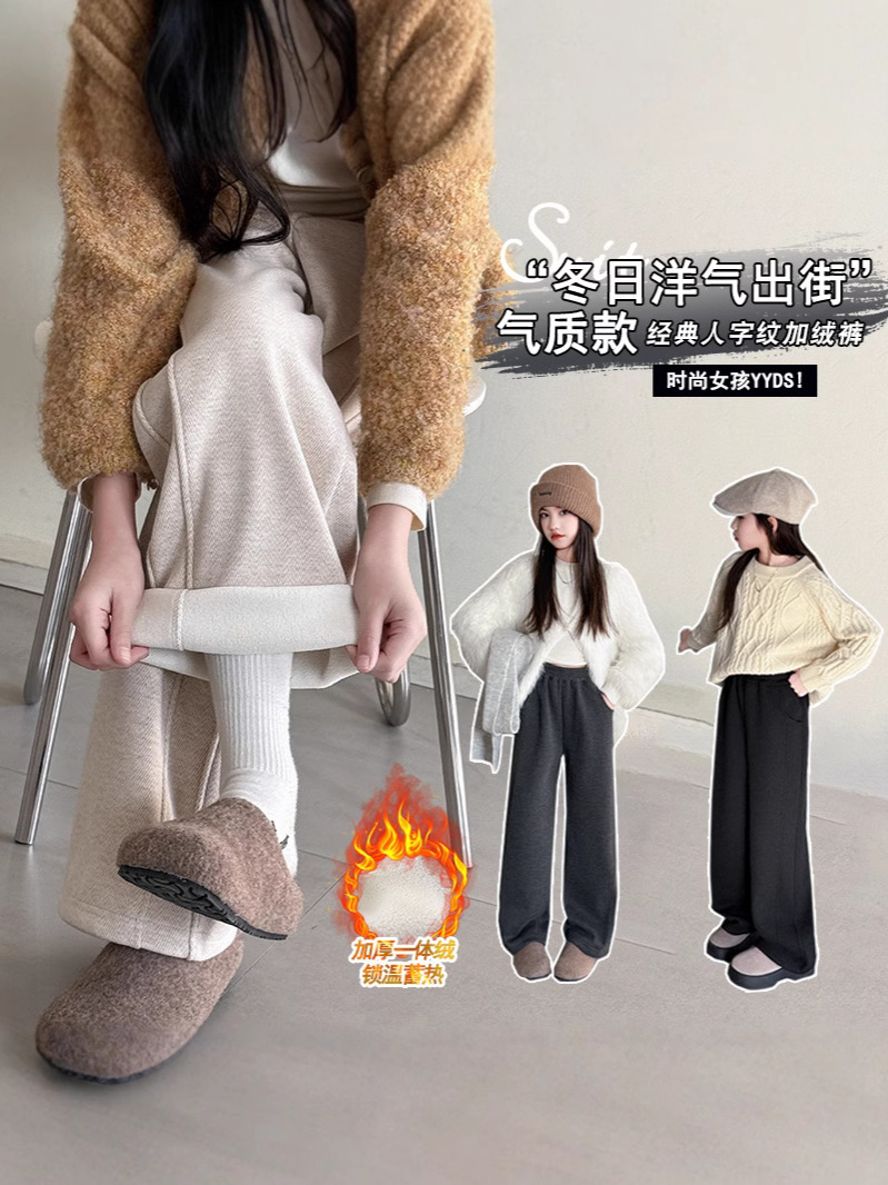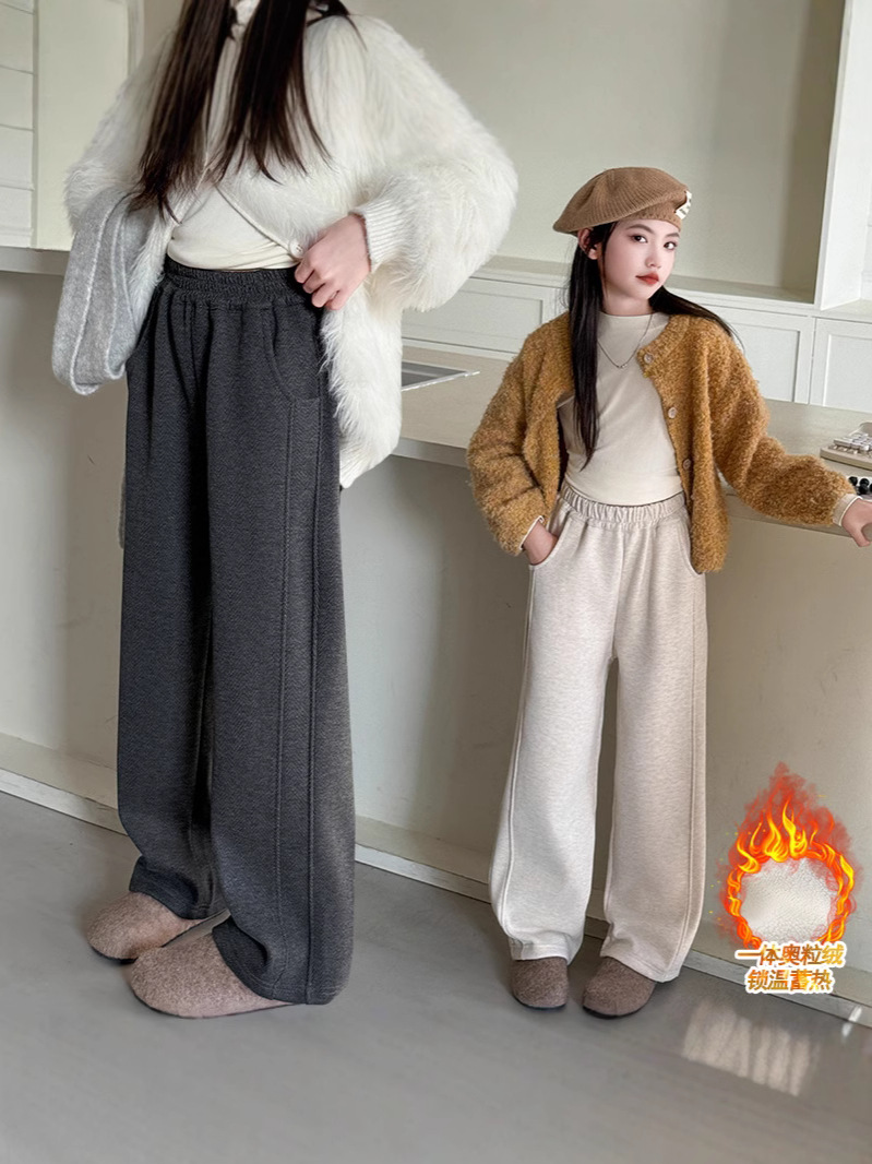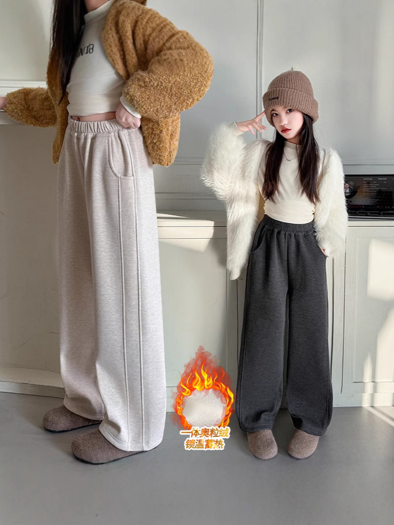 Детские широкие брюки для девочек на осень и зиму 2025, новые спортивные штаны-бананы с высокой талией, прямые повседневные спортивные штаны