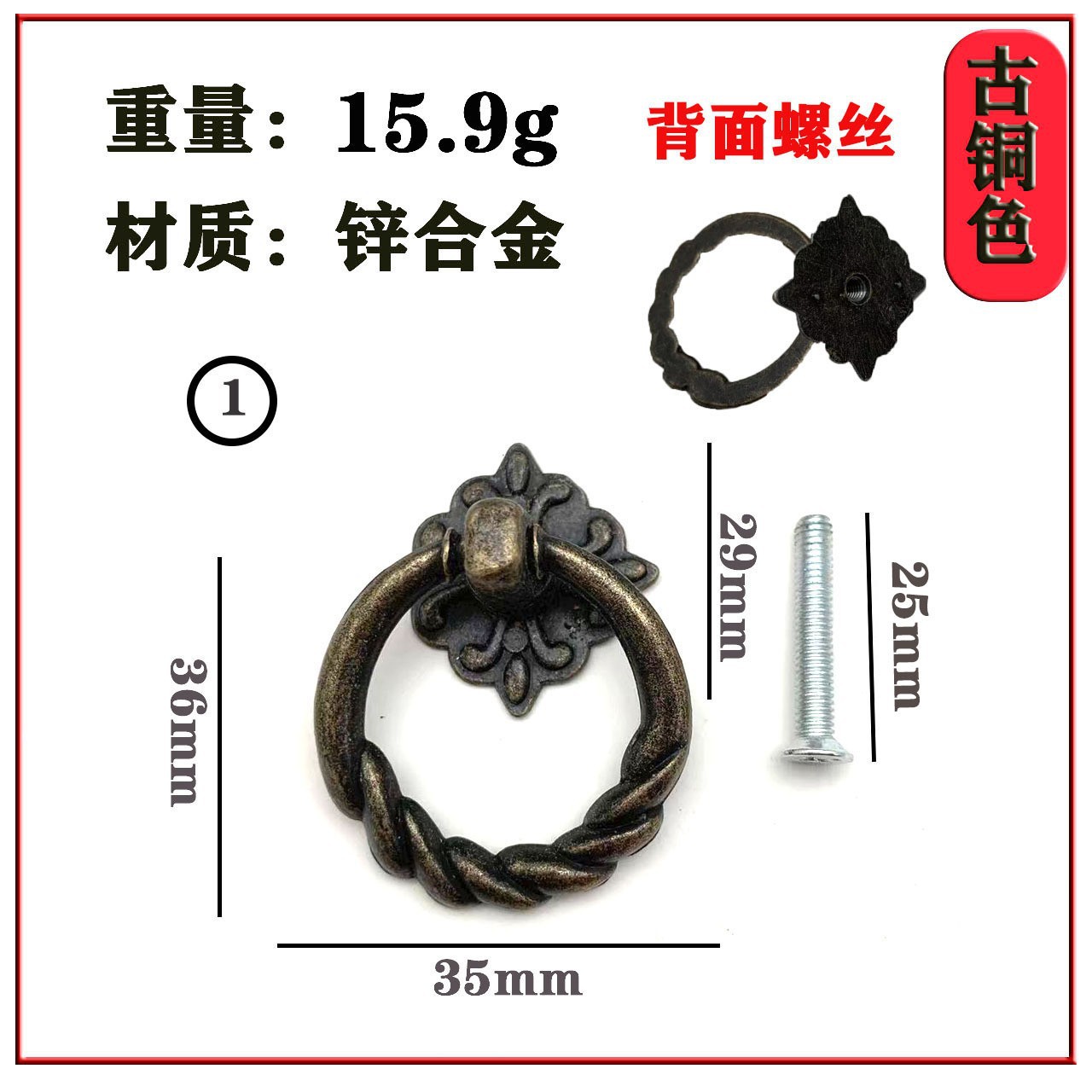 Новый китайский стиль антикварного цинкового кольца с выдвижным кольцом простой мебельный шкаф кольцевая петля с цинковым кольцом ручка ящика