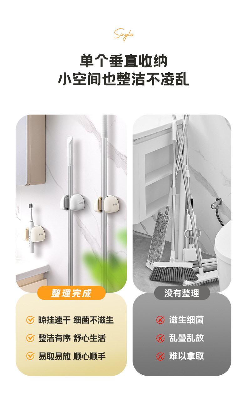 Держатель для швабры на присоске, одинарный, без сверления, сильная несущая способность, для ванной комнаты, туалета, метлы, швабры, фиксированная подвесная стойка, стеллаж для хранения