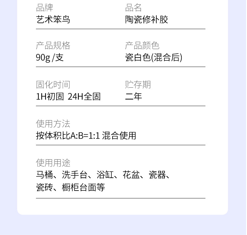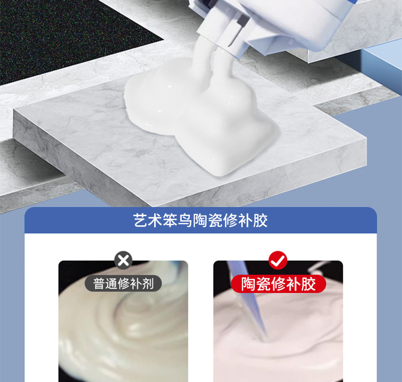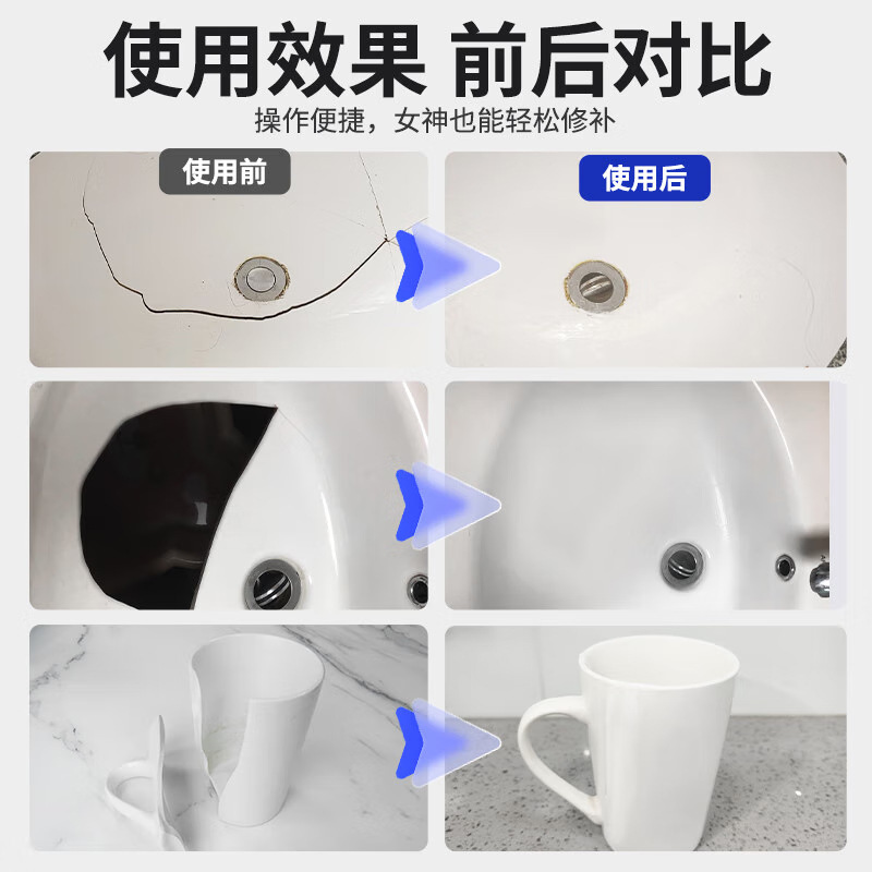 Клей для ремонта керамики-белый 90г+толкатель+скребок+наждачная бумага; Клей для ремонта керамики-серый 90г+путтер+скребок+наждачная бумага; Инструменты (без клея)