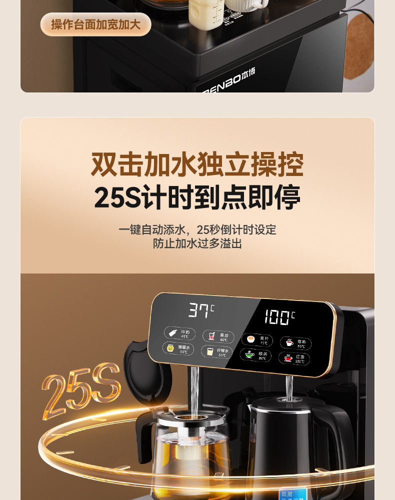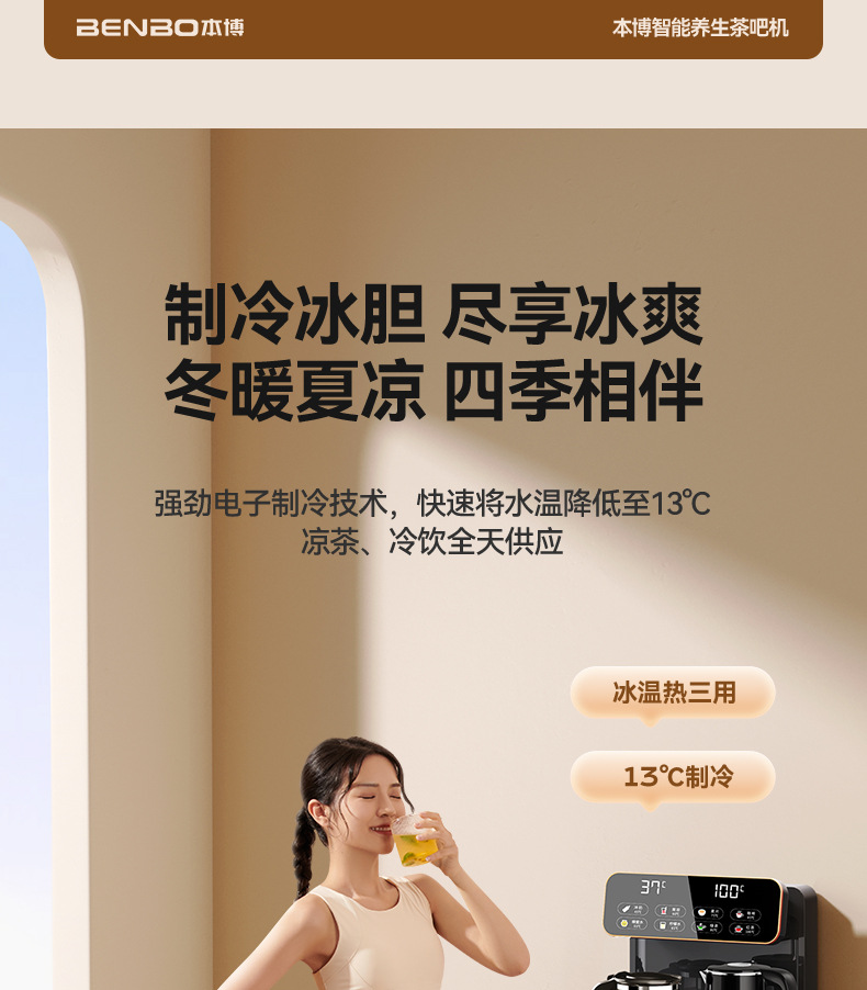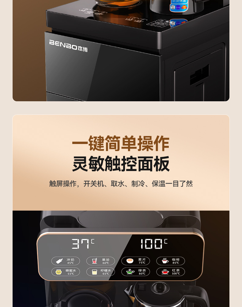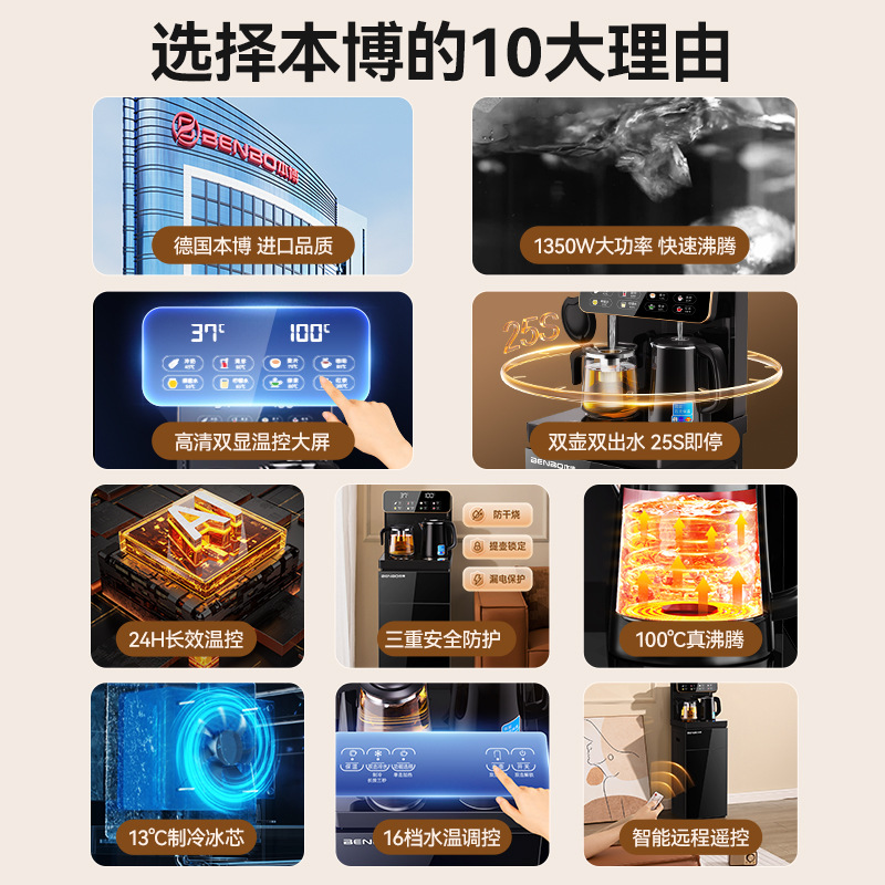 Машина для чайного бара Benbo, бытовой вертикальный диспенсер для льда и горячей воды двойного назначения, встроенный шкаф, полностью автоматический кипятильник и ведро для воды