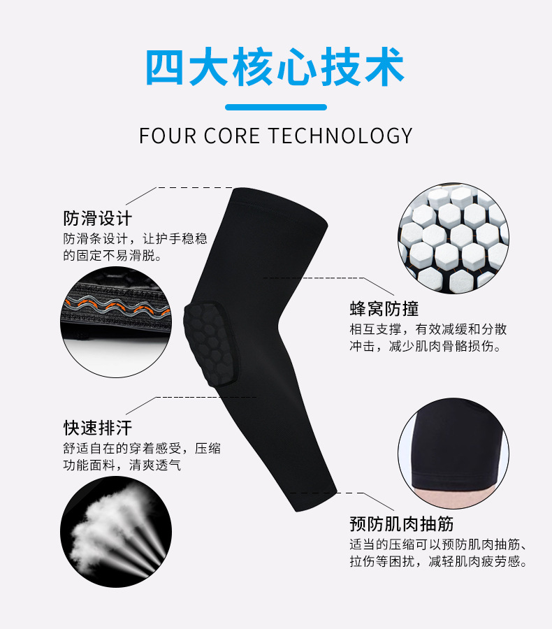 Спотовые сотовые противоударные рукава баскетбольные спортивные солнцезащитные кремы для защиты локтей