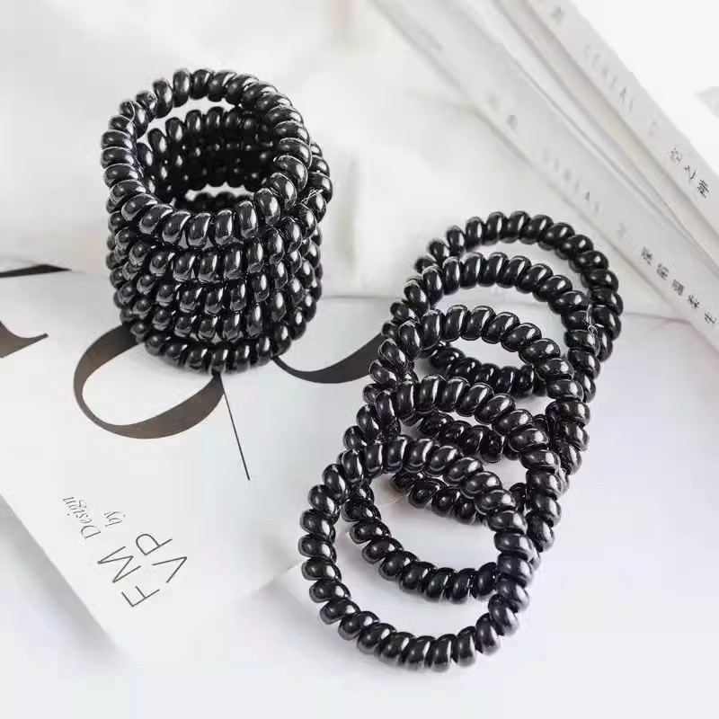 Черный телефонный шнур для волос без следов шнур для волос Высокая эластичная минималистская электрическая катушка для волос 1 юань магазин оптом